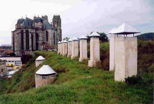 Opevněný tábor Toul. Město, ústřední jádro opevněného tábora, začalo být v roce 1700 obehnáno opevněnou zdí. Ačkoli tato zeď nikdy nebyla opatřena plánovanými sedmi raveliny, byla přesto obehnána valem s devíti baštami a stejným počtem obvodových hradeb a vybavena třemi branami, z nichž se dodnes dochovala pouze brána Metz. V období, které je předmětem tohoto rejstříku, se ve městě Toul nacházelo několik krásných kasáren, celkem pět, které byly podrobeny zkoušce. Ve směru hodinových ručiček, počínaje od západu, postupně nacházíme: kasematy Saint-Léon (1867 - asi dvacet polí přeměněných na soukromé garáže), kasematy na ulici rue de la porte de Metz (1876 - dvakrát asi deset polí), kasematy Forey-Curial (1875-1878 - asi dvacet polí, ale značně zchátralé, ty na severu jsou zakončeny prostory pro hasiče), kasematy Rigny (1875-1878 - na dvou úrovních, 22 polí, zchátralé) a konečně kasematy Moselské brány (zvané Châtelet?) (1882-1883, pole na východě nádherně zrestaurována - mediální knihovna - 8 polí západně od brány opuštěno, ale opatřeno velmi krásnými litinovými plaketami s číslem kasemat). U bašt 38 a 45 si všimneme starých kasáren, která byla modernizována a jejichž průčelí jsou uspořádána jako světlíky směřující k novým kasematám typu Séré de Rivières, dvoupatrovým kasematám, z nichž horní je posunuta dozadu a tvoří terasu před kasárnami. Většina bašt má duté příčky a kryté průjezdy, ale existují i některé s chronogramy z let 1829 nebo 1830. Staré brány Francie na západě a Mosely na jihovýchodě byly přestavěny, první v roce 1874 a druhá s mnoha krásnými ozdobami v letech 1882-1883. Veranda Moselské brány chránila bočně zatahovací rolovací most. Na jihozápadě byla poslední brána Jeanne d'Arc, která prorazila zeď, postavena teprve v roce 1900. Je třeba mimochodem poznamenat, že most u Metské brány byl šindelový a je stále viditelný a relativně kompletní. Nedaleko od této brány, zvenčí, se nachází opevněný most přes kanál (kasemata s otevřenou zádí, 10 m dlouhá a 4 m široká, se dvěma střílnami o výšce 80 cm a šířce 40 cm) s chronogramem z roku 1846 na vnitřní straně a dalším z roku 1877 na vnější straně. Bašta 38 (SSE) si stále zachovala svou manipulaci, zatímco střelný sklad napravo od Moselské brány byl v roce 1877 zasypán zemí.