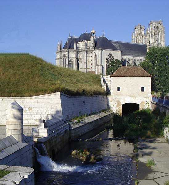 Befestigtes Lager Toul. Der zentrale Kern des befestigten Lagers, die Stadt, wurde ab 1700 von einer befestigten Mauer umgeben. Obwohl diese Mauer nie mit den geplanten sieben Ravelins ausgestattet wurde, war sie dennoch von einem Wall umgeben, der aus neun Bastionen und ebenso vielen Kurtinen bestand und mit drei Toren ausgestattet war, von denen heute nur noch das Metzer Tor erhalten ist. Für den für diesen Index relevanten Zeitraum enthält die Stadt Toul mehrere schöne Kasernen, die auf die Probe gestellt wurden, insgesamt fünf. Im Uhrzeigersinn, beginnend im Westen, finden wir nacheinander: die Kasematten von Saint-Léon (1867 – etwa zwanzig Joche, die in private Garagen umgewandelt wurden), die der Rue de la Porte de Metz (1876 – zweimal etwa zehn Joche), die Kasematten von Forey-Curial (1875-1878 – etwa zwanzig Joche, aber ziemlich baufällig, die im Norden sind von Räumlichkeiten für die Feuerwehrleute überragt), die von Rigny (1875-1878 – auf zwei Ebenen, 22 Joche, baufällig) und schließlich die des Moseltors (genannt Chatelet?) (1882-1883, die Joche im Osten hervorragend restauriert – Mediathek – die 8 Joche westlich des Tors verlassen, aber mit sehr schönen gusseisernen Tafeln mit der Kasemattennummer versehen). An den Bastionen 38 und 45 fällt eine alte Kaserne auf, die modernisiert wurde und deren Fassaden als Lichtschächte gegenüber neuen Kasematten vom Typ Séré de Rivières angeordnet sind, zweistöckige Kasematten, von denen die obere zurückgesetzt ist und vor der Kaserne eine Terrasse bildet. Die meisten Bastionen haben hohle Querbalken und überdachte Durchgänge, aber es gibt auch einige mit den Chronogrammen 1829 oder 1830. Die alten Tore Frankreichs im Westen und Moselle im Südosten wurden wiederaufgebaut, das erste 1874 und das zweite, mit vielen schönen Verzierungen, 1882–1883. Der Vorbau des Moseltors schützte eine seitlich einziehbare Rollbrücke. Im Südwesten durchbrach das Jeanne-d’Arc-Tor als letztes die Mauer; es wurde erst 1900 erbaut. Nebenbei sei erwähnt, dass die Brücke am Metz-Tor eine Schindelbrücke war und noch sichtbar und relativ vollständig ist. Unweit dieses Tors, außen, überspannt eine befestigte Brücke den Kanal (eine Kasematte mit offener Rückseite, 10 m lang und 4 m breit, mit zwei Schießscharten von 80 cm Höhe und 40 cm Breite), die innen ein Chronogramm für 1846 und außen ein weiteres für 1877 trägt. Bastion 38 (SSO) war noch in Betrieb, während das Pulvermagazin rechts vom Moseltor 1877 mit Erde bedeckt wurde.