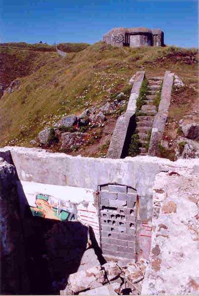 Place de Brest, nord du goulet, 1898. Assise à l'emplacement d'une ancienne batterie d'obusiers de 22, pratiquement droit au sud par rapport à l'axe de la capitale du réduit. Les 4 canons M de 100 mm modèle 1881 T.R. sur affûts Vavasseur repris à l'état d'armement de 1900, sont, à celui de 1914, remplacés par 4 canons M de 100 mm modèle 1897 T.R. sur affûts M modèle 1897 P.C. Cette batterie a subi d'importantes modifications car elle est toujours utilisée par la Marine pour des tirs d'armes légères. Seules les traverses situées à chaque extrémité de la batterie subsistent. Un peu en arrière et vers la batterie voisine de 24 c, on distingue encore très bien le toit du local d'une dynamo, local à demi enterré et situé, lui aussi, dans le périmètre non autorisé. Cette dynamo alimentait un projecteur de 150 cm, installé avant 1908, sous casemate, sur les devants de la batterie de 100 mm, au bord de la falaise. Cette casemate a vu sa toiture être défoncée par un bulldozer en 2004. Voir position de Toulbroc'h.