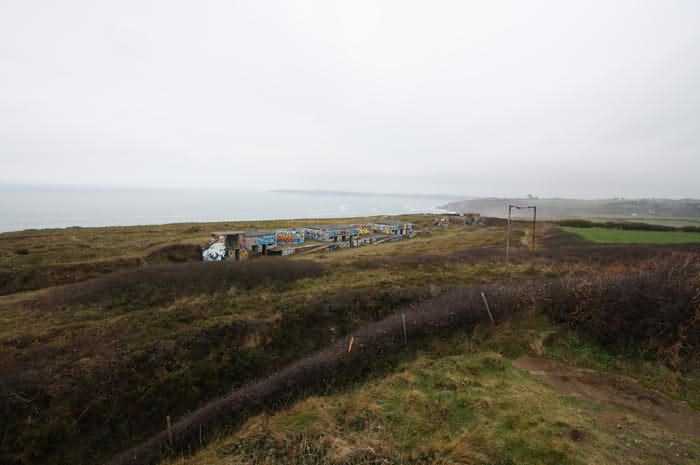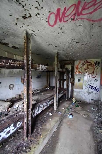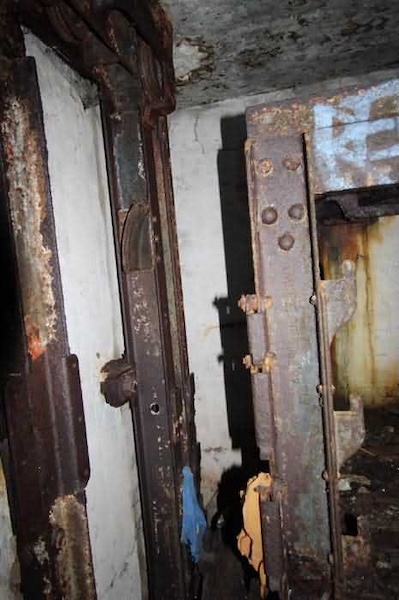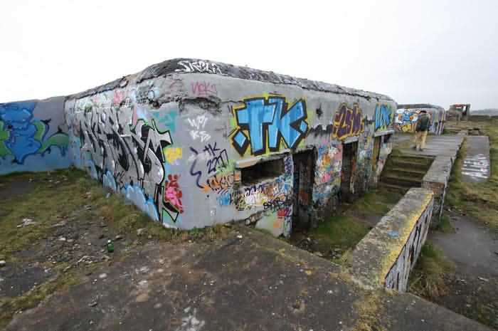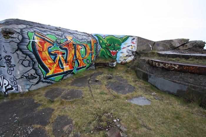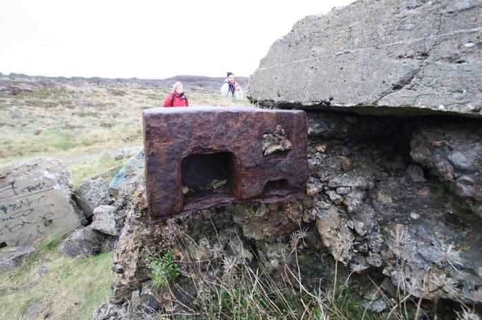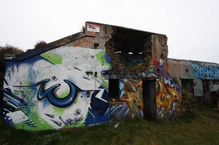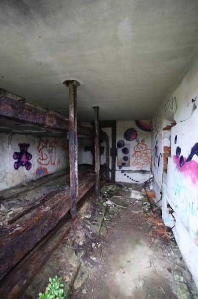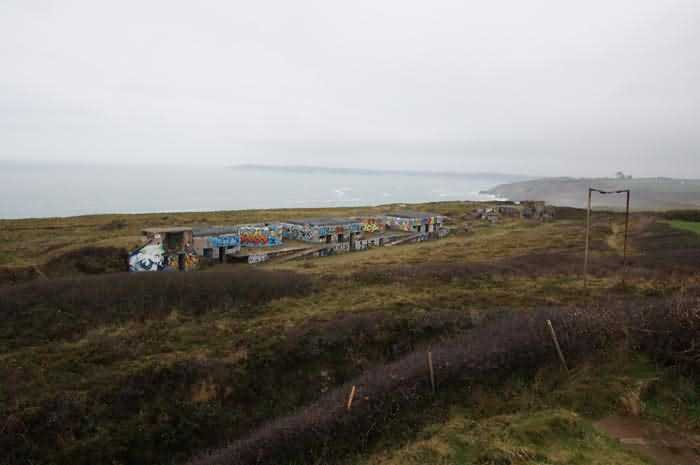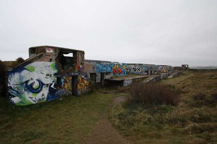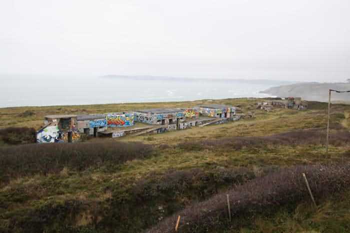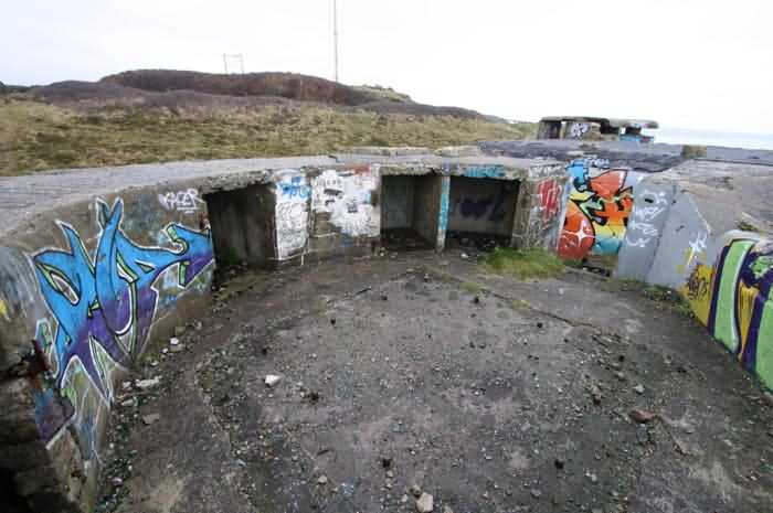 Place de Brest, nord du goulet, 1904-1905. Cette batterie en montre en réalité deux. Une batterie de 194 mm sera, début du XXème siècle, désarmée et partiellement détruite au profit Les 4 canons M de 19 c modèle 1870 sur affûts M mle 1884 P.A. de la batterie de l'Ouest, repris à l'état d'armement de 1900, sont, à celui de 1914, remplacés par 4 canons G de 240 mm modèle 1903 T.R. sur affûts G mle 1903. En fait ce sera une toute nouvelle batterie que l'on coulera directement sur les arrières de celle de 19 c. Elle alignait alternativement un abri soute (2 simples et 3 doubles) et un emplacement de tir, tandis que chaque extrémité comportait un poste d'observation. L'abri double sis le plus à l'ouest a explosé, endommageant les pas de tir qui lui étaient contigus. De nos jours, côté ouest, sur les avants et légèrement en contrebas de la batterie, on peut voir, outre un abri à personnel jouxté d'un autre observatoire, vestiges de la batterie de 19 c, un curieux pas de tir comprenant trois sous-sellettes d'affût différentes séparées par une dizaine de mètres, mais inclues dans un même quadrilatère. Nous avons pensé à un polygone d'essai car outre trois pièces différentes, il n'y a aucun parapet protecteur ni soute ou abri. Il n'est même pas exclu que ce soit une installation allemande. On peut aussi distinguer les restes arasés de deux magasins bétonnés du début et de la fin des années 1890 ainsi qu'une citerne. Côté Est, très proche de la batterie de 240 mm, se trouvent les vestiges d'une autre batterie française, de moindre calibre. Cette batterie de 240 mm, est très intéressante à visiter car, nonobstant les inévitables tags, les soutes disposent encore de leur système de manipulation des projectiles (berceaux, manivelles, chemins de roulement en galets, etc.). Voir position de Toulbroc'h.