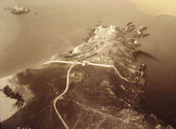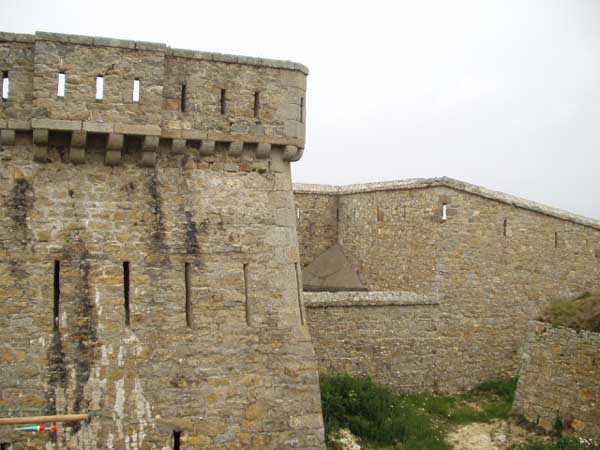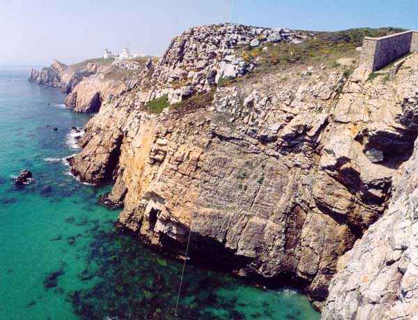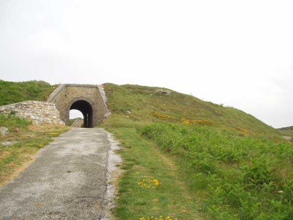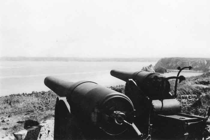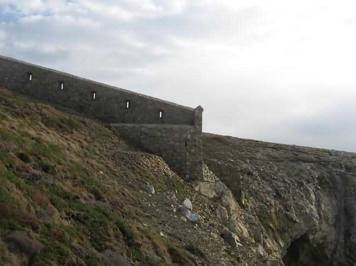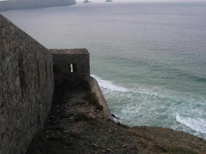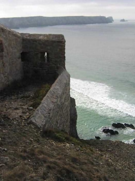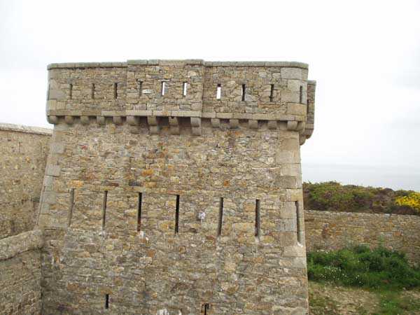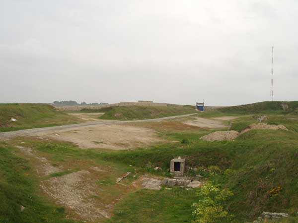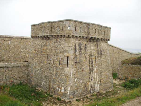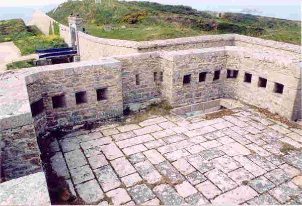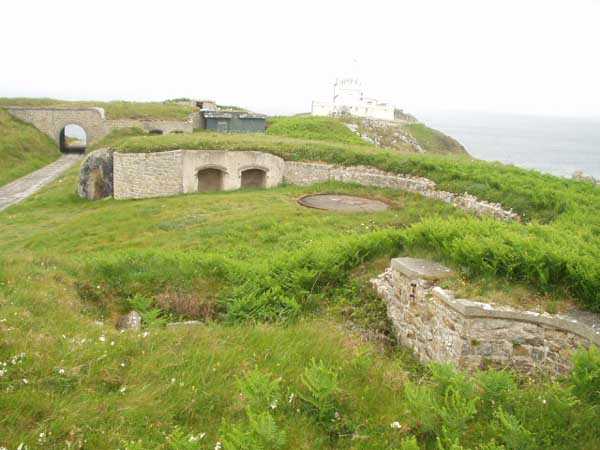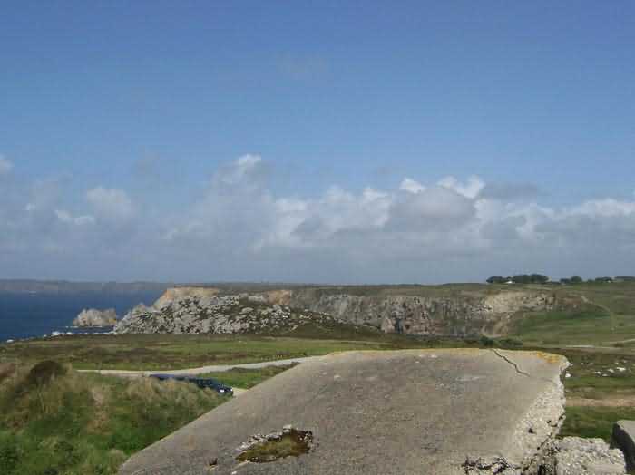 Place de Brest, presqu'île de Crozon. À l'extrême ouest de la presqu'île, la pointe du Toulinguet est un éperon qui fut barré par un rempart, percé de meurtrières, aux environs de 1884-1885. Un document daté du 26 janvier 1911 précise qu'en cas de mobilisation, on armerait le front de terre de 2 x 90 c. Ce rempart comporte une petite courtine du centre de laquelle ressort une tour modèle 1811 n° 3, pour 18 hommes, construite en 1813. En 1883-1884, au-delà de cette tour, on aménage des plates-formes d'artillerie pour deux batteries de 4 canons G de 19 c modèle 1875-76 sur affûts G.P.C. (repris aux états d'armement de 1900 et de 1914) et 4 canons de 24 c modèle 1876 sur affûts G.P.C. (idem), orientées vers le nord, qui concourraient ainsi à l'interdiction de l'entrée du goulet en croisant leurs feux avec les batteries annexes du vieux fort de Bertheaume. Pour les canons de 19 c, il fut un temps question de les changer pour des 240 mm T.R. modèle 1903 sur affût G modèle 1903, mais sans suite. De même en 1888 il est question de construire une batterie de 3 ou 4 (les deux propositions existaient) mortiers de 270 mm ainsi qu'une batterie de 2 x 32 c, projet resté sans suite. Entre ces deux batteries (de 19 c et de 24 c), entre 1894 et 1896, on ajoute une autre de 4 canons G de 95 mm sur affûts G de côte (en très bon état – 05/2004) et un magasin sous roc (une pièce de stockage de 8 x 4,8 m et une seconde de 3 x 3 m), creusé vers 1892, dont les accès se situent juste derrière la tour Napoléon. Orientée au sud-ouest, une petite batterie pour 2 x 16 c sera construite en 1883-1884. L'ensemble comporte aussi trois postes d'observation bétonnés, une citerne et un magasin à poudre, modèle 1879, dont la pièce de stockage fait 22 m de longueur pour 5,5 m de largeur. Les gaines latérales de ce magasin à poudre mènent (transformation de ± 1892-95) à un passage couvert reliant les merlons nord et sud où sont implantées les batteries. Dans ce passage couvert, se trouvait l'usine électrique du projecteur sis à mi-chemin entre cette usine et le sémaphore. Au 1/4/1914, on trouve dans le plan de défense un projet pour 3 projecteurs de 150 cm (2 feux chercheurs et 1 feu de tir). En fait, une seule casemate sera construite, à la fois pour la reconnaissance et le tir en 1915. Ce projecteur, unique, pouvait aussi bien être orienté au nord de la pointe qu'au sud. Une voie métrique lui permettait de sortir de son abri de jour, mais si abri(s) de combat il y eût, ils ont aujourd'hui disparu. Cet unique projecteur fut installé en mars 1915. Tout à la pointe, il subsiste les deux parapets, décalés en hauteur de la batterie Vauban, ainsi que le phare datant, lui, de 1848. Lors de la révision de 1913, de vastes desseins sont projetés telles l'installation de 4 x 305 ou 340 mm sous tourelles et deux batteries de 4 x 138 mm. Tout cela restera sans suite. Abritant un sémaphore de la Marine (1949-1951), le site est interdit d'accès. Il vaut cependant la peine de se rendre sur place ne fut-ce que pour l'excellent état de conservation de la tour et du rempart dont les branches tombantes sont impressionnantes, ceci sans évoquer la splendeur naturelle des lieux. Trouvé orthographié erronément "Tourlinguet".