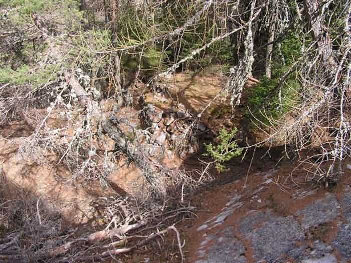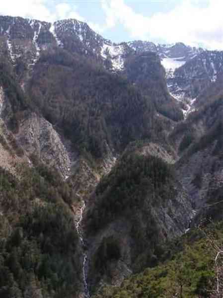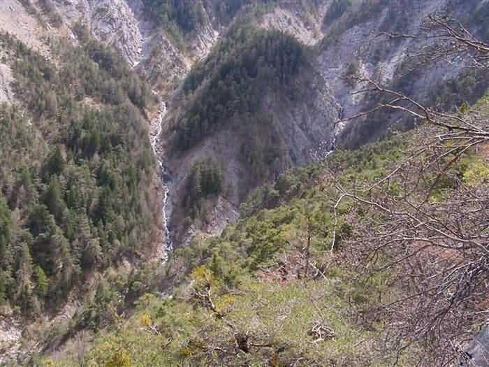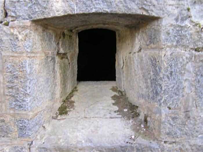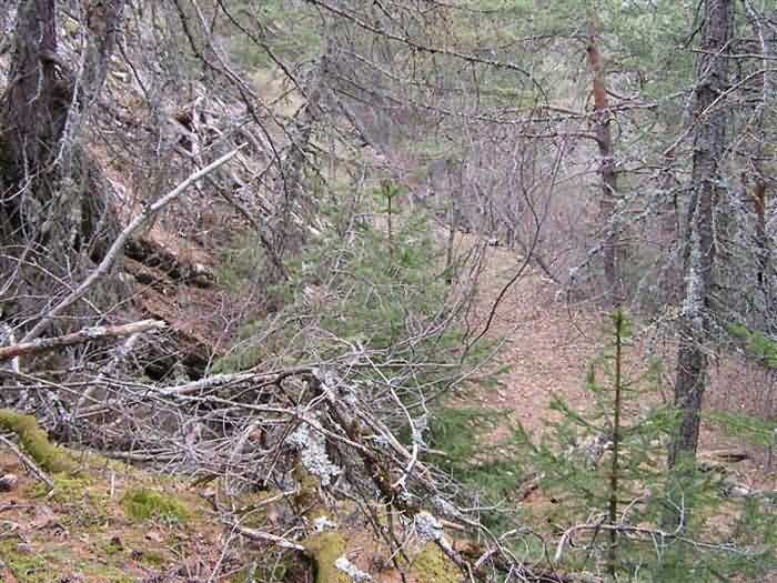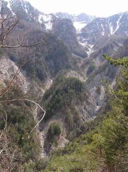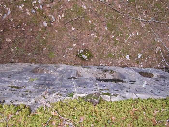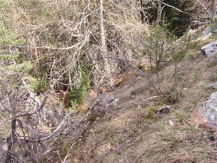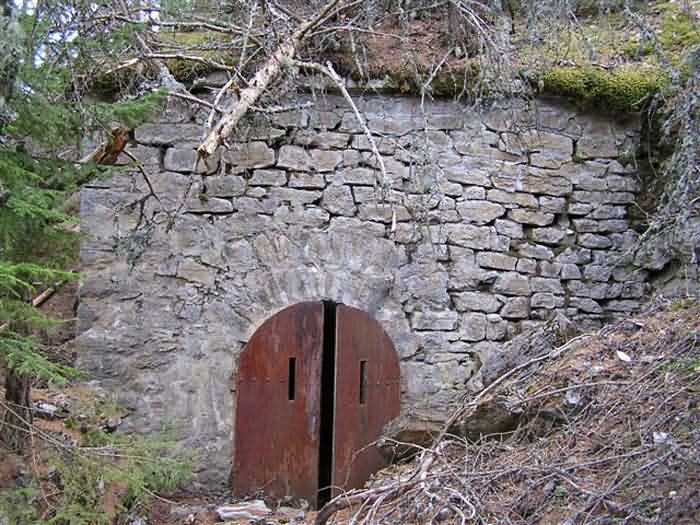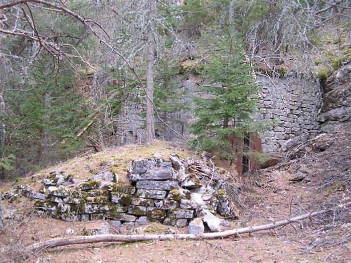 Fortress of Saint-Vincent, southeast of the fortress, 188? 1272 m/alt. Located 3200 m southeast of Saint-Vincent Fort, this post constitutes the most advanced element of the fortress. Rather surprising for those who don't know what to expect, it is only a simple parallelepiped casemate backed against the rock. With embrasures, two for guns framed by four for musketry fire, its facade resembles a caponier flank. Externally, this block has approximate dimensions of 9 x 5 x 4 m. Its wooden entrance door is covered with thick metal sheets. It is preceded by a sunken path for a few meters. The interior is that of a caponier, without the slightest frill, in which two 90 mm guns were placed that had only one objective, the bridge on the current D 900 (immediately upstream from the intersection with the D 954) whose destruction by plunging fire would have blocked any penetration downstream. We are however skeptical about the destruction capacity of an engineering structure with 90 mm shots but the fact remains that this is what was planned. Was there a mine device and were these guns only there to protect the destruction? That is more likely. The target was located 800 m from the post and nearly 400 m lower. Note that the bridge is not that of the current road which cut off the curve initiated by the road of yesteryear, but, although no longer in use, it was not destroyed and still remains. The work is in relatively good state of preservation (06/2006) and freely accessible.