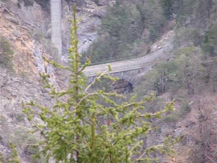 Festung von Saint-Vincent, Südosten der Festung, 188? 1272 M ü M. Gelegen 3200 m südöstlich des Forts Saint-Vincent, bildet dieser Posten das am weitesten vorgerückte Element der Festung. Ziemlich überraschend für den, der nicht weiß, was ihn erwartet, ist es nur eine einfache quaderförmige Kasematte, die an den Felsen gelehnt ist. Mit Schießscharten, zwei für Kanonen, eingerahmt von vier für Musketenfeuer, ähnelt ihre Fassade einer Kaponnierenflanke. Äußerlich hat dieser Block die ungefähren Abmessungen 9 x 5 x 4 m. Seine Holzeingangstür ist mit dicken Blechen bedeckt. Ihr geht ein auf wenige Meter eingetiefter Weg voraus. Das Innere ist das einer Kaponniere, ohne die geringste Verzierung, in der zwei 90-mm-Kanonen Platz nahmen, die nur ein einziges Ziel hatten, die Brücke auf der heutigen D 900 (unmittelbar oberhalb der Kreuzung mit der D 954), deren Zerstörung durch Steilschuss jede Eindringung stromabwärts blockiert hätte. Wir sind jedoch skeptisch bezüglich der Zerstörungsfähigkeit eines Kunstbauwerks mit 90-mm-Geschossen, aber Tatsache ist, dass dies vorgesehen war. Gab es eine Mineneinrichtung und waren diese Kanonen nur da, um die Zerstörung zu schützen? Das ist wahrscheinlicher. Das Ziel befand sich 800 m vom Posten und fast 400 m tiefer. Man beachte, dass die Brücke nicht die der heutigen Straße ist, die die von der Straße von einst eingeleitete Kurve abgeschnitten hat, aber, obwohl nicht mehr in Gebrauch, wurde sie nicht zerstört und besteht noch. Das Werk ist in relativ gutem Erhaltungszustand (06/2006) und frei zugänglich.