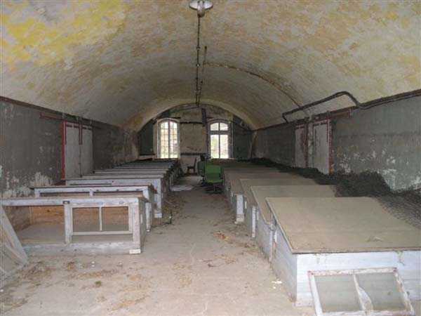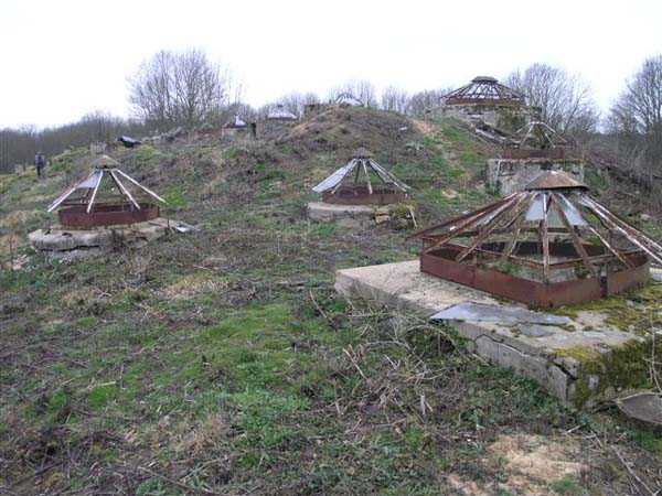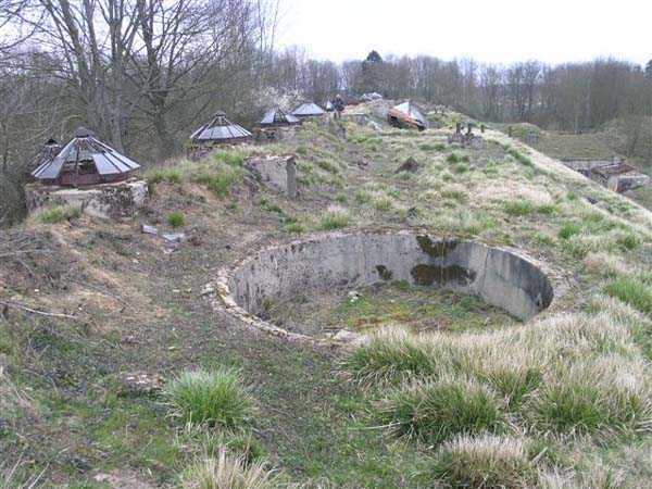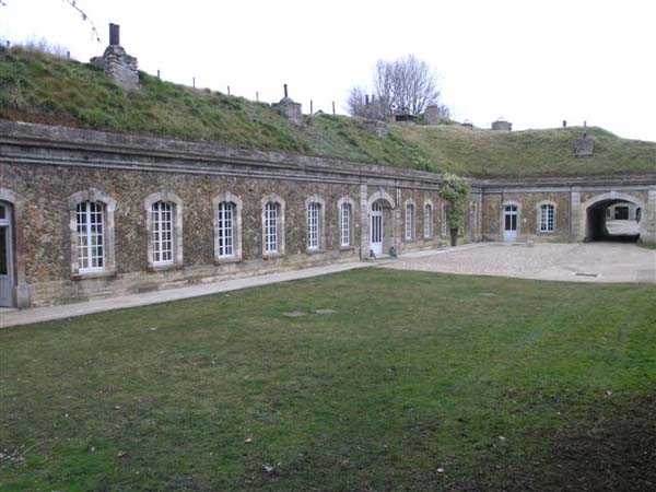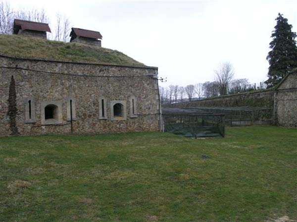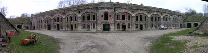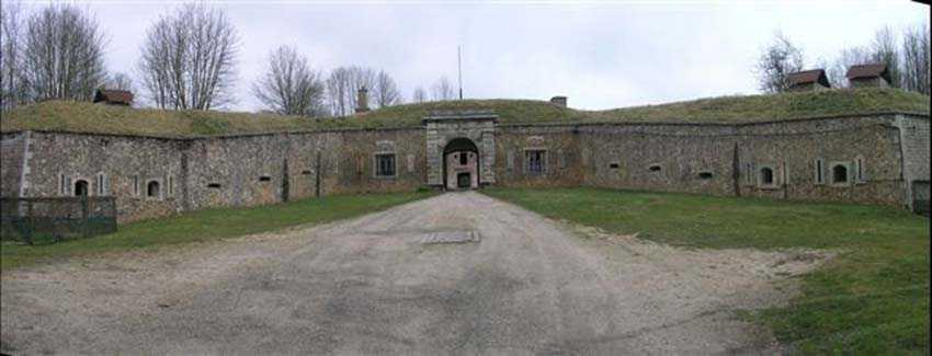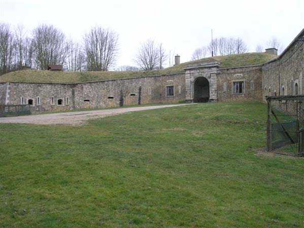 Fortress Paris, westlich der Stadt, 1878–1881. Tatsächlich ein echtes Fort, das aufgrund der nahe gelegenen 6 Batterien, die alle die Marly-Stellung bildeten, allgemein als Redoute bezeichnet wird. 802 Mann und 40 Geschütze. Großes Trapez, dessen Gräben durch einen Flügel am Frontbogen II, eine doppelte Kaponniere am Frontbogen III und die Ringmauerkästen, die für die Schlucht verantwortlich waren, verteidigt wurden. Diese Ringmauer ist ungewöhnlich tief, an ihren Seiten sind nicht weniger als fünf Kasematten ausgerichtet, darunter zwei Artillerie- und drei Musketenkasematten. Durch das Eingangsportal hindurch steht man vor den zehn Jochen der zweistöckigen Kaserne. Letztere brannte 1944 teilweise nieder und die Steine wurden durch einen pyroklastischen Strom beschädigt. Es gibt jedoch noch immer einen prächtigen doppelten Lamoureux-Ofen, dessen Metallteile erhalten geblieben sind, und einen Brunnen. Über diesem Brunnen befindet sich eine Pumpe, deren zwei Räder einen Durchmesser von 152 cm haben. Es stürzt 40 Meter in ein unterirdisches Aquädukt aus der zweiten Hälfte des 17. Jahrhunderts, das das Schloss Versailles mit Trinkwasser versorgte. Die Hauptkaserne weist neben einer beeindruckenden Anzahl von Oberlichtern einen über eine Treppe erreichbaren Infanteriekamm und vier Panzer für Flugabwehrgeschütze auf, die jeweils mit zwei Betonkanonen für Munition verkleidet sind. Einige dieser Kanonen haben ihre hölzernen Geschoßstützen behalten. Auf beiden Seiten dieser Kaserne bieten zwei überdachte Gänge Zugang zu einem mit Konsolen ausgestatteten Pulvermagazin und zu zwei weiteren Höfen; rechts der Offizierspavillon und links die Krankenstation und einige Lager; diese beiden Gebäude haben ebenfalls zwei Ebenen für sechs Buchten. Das linke Pulvermagazin verfügt noch über seine zwei Blitzableiter sowie eine seiner drei vollständigen Lampenzinnen. Das Fort umfasst 16 Hohltraversen, die meisten vom Modell von 1879. Sie gehören zu den schönsten, die wir je gesehen haben. Ihre Fassade weist eine leichte Wölbung auf, und ihre Widerlager sind gebogen und enden in einer Sackgasse. Die Krümmung dieser seitlichen Widerlager führt zu einem Rücksprung auf beiden Seiten der Fassade, in den sich mit Spitzbogenschmiedearbeiten versehene Öffnungen öffnen. Diese Querbalken sind alle zweistöckig, und einige weisen noch eine prächtige Wendeltreppe aus Stein auf. Die Querbalken der Stirnseite, von Nr. 3 bis Nr. 14, sind durch eine knapp 145 cm breite Rundgalerie verbunden. Die Kaponnieren weisen nichts Besonderes auf, abgesehen von mehreren schön geschwungenen Gittern und einer Verbindung über die die Böschung flankierenden Galerien mit der Brüstung der Doppelböschung. Im Detail fallen ein Schießschartenverschluss in einer Kasematte des linken Rumpfes der Kurtine, schöne gusseiserne Dachrinnen, die in Delphinköpfen an den Ecken der Kaserne enden, und zahlreiche kleine Bretter auf, die Käfigapplikationen tragen. Das Fort ist bekannt als Schauplatz der ersten Panzertests. Derzeit verwaltet von der O.N.F. (03/2007), das dort Goldfasane für die Präsidentenjagd züchtet. Alle Gräben, mit Ausnahme der Schluchtgräben, wurden zugeschüttet, das Fort ist jedoch im Allgemeinen in gutem Zustand und unmarkiert, obwohl die Gebäude, mit Ausnahme derjenigen, die auf den linken Hof blicken, nicht instand gehalten werden. Sicherlich eines der Forts in Paris, das einen Besuch wert ist. Beachten Sie den alten Chappe-Telegrafenturm in der Nähe.