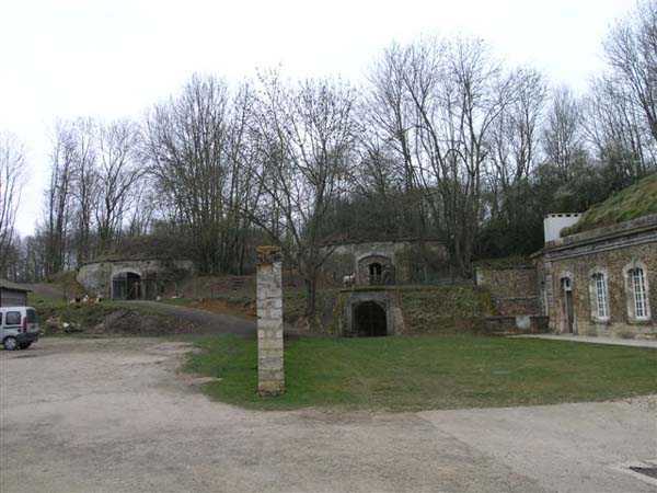 Place de Paris, ouest de la ville, 1878-1881. En fait un véritable fort, plus communément désigné comme réduit en raison de la présence proche de 6 batteries, le tout formant la position de Marly. 802 hommes et 40 pièces. Grand trapèze dont la défense des fossés étaient assurée par un aileron au saillant II, une caponnière double au saillant III et les coffres de la courtine qui se chargeaient de la gorge. Cette courtine se révèle anormalement profonde, ses flancs alignant pas moins de cinq casemates dont deux d’artillerie et trois de fusillade. Le porche d’entrée franchi, on débouche face aux dix travées du casernement à deux niveaux. Ce dernier a partiellement brûlé en 1944 et les pierres ont souffert de la pyroclastie. On y trouve néanmoins encore un superbe double four Lamoureux ayant conservé ses parties métalliques et un puits. Ce puits est surmonté par une pompe dont les deux roues ont 152 cm de diamètre. Il plonge à 40 mètres dans un aqueduc souterrain datant de la seconde moitié du 17ème siècle et alimentant en eau potable le château de Versailles. La caserne principale montre, outre une quantité impressionnante de lanterneaux, une crête d’infanterie que l’on pouvait gagner par un escalier et quatre cuves pour pièces de D.C.A., chacune bardée de deux caissons bétonnés pour les munitions. Certains de ces casiers ont conservé leurs supports en bois pour les projectiles. De part et d’autre de ce casernement, deux passages couverts donnent accès, chacun, à un magasin à poudre pourvu de corbeaux, et à deux autres cours ; à droite le pavillon des officiers et à gauche l’infirmerie et quelques magasins, ces deux bâtiments ayant également deux niveaux pour six travées. Le magasin à poudre gauche possède encore ses deux paratonnerres ainsi que l’un de ses trois créneaux à lampe complet. Le fort comprend 16 traverses creuses, pour l’essentiel du modèle 1879. Elles comptent parmi les plus jolies que nous ayons rencontrées. Leur façade accuse un léger fruit et leurs culées sont courbes tout en se terminant en cul de four. La courbure de ces culées latérales implique un retrait de chaque côté de la façade, retrait où donnent des ouvertures munies d’une ferrure pointue. Ces traverses ont, toutes, deux niveaux et certaines montrent encore un superbe escalier hélicoïdal en pierre. Celles du front de tête, soit de la n° 3 à la n° 14 sont reliées par une galerie enveloppe large d’à peine 145 cm. Les caponnières n’ont rien de particulier sinon plusieurs grilles joliment galbées et une communication via leurs galeries de flanquement d’escarpe, avec le parapet de l’escarpe demi-détachée. Au rang de détail, nous relèverons la présence d’un volet obturateur d’embrasure dans une casemate du coffre gauche de la courtine, de belles gouttières en fonte se terminant par des têtes de dauphins aux angles du casernement et de nombreuses planchettes supports de cages-appliques. Le fort est connu pour avoir été le théâtre des premiers essais des chars de combat. Actuellement géré par l'O.N.F. (03/2007) qui y élève des faisans dorés pour les chasses présidentielles. Tous les fossés, hors celui de gorge, ont été remblayés, mais le fort est globalement en bon état, non tagué, et ce bien que les bâtiments, hormis ceux donnant sur la cour gauche, ne soient pas entretenus. Assurément un des forts de Paris qui mérite une visite. Notons à proximité une vieille tour pour télégraphe Chappe.