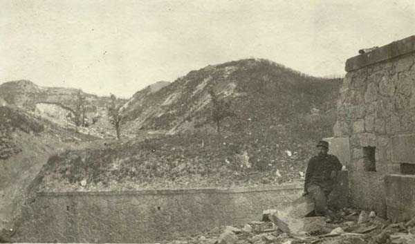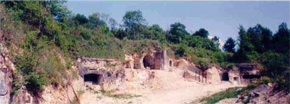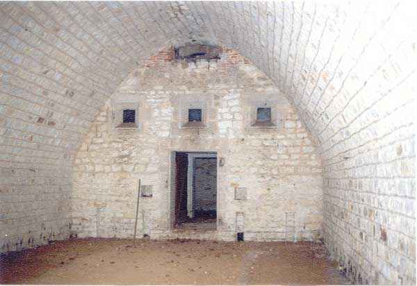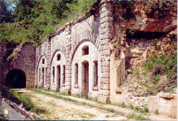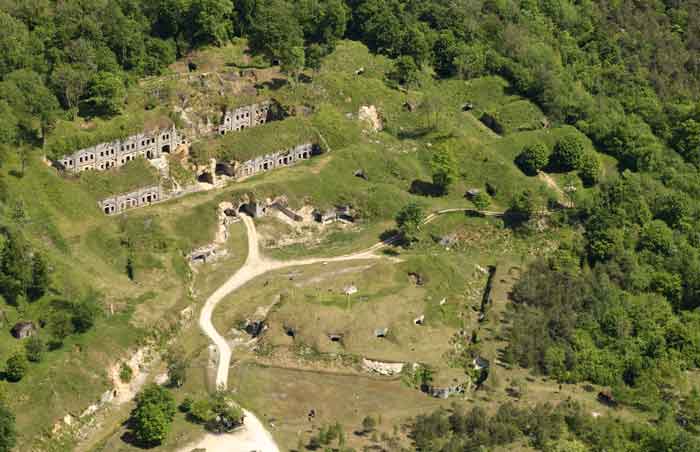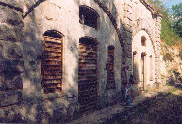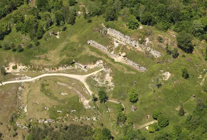 Defensive curtain of the Hauts de Meuse, 1877-1880. 264 m alt. Originally for 751 men, 42 guns. Called Fort d'Essling. "It's the same as the one at Génicourt!" We've lost count of the number of times we've heard this assertion. The similarities are certainly great, but not visiting one under the pretext of having seen the other is a mistake that should not be made. In general terms, mission, perimeter, ravelin, layout of the barracks, powder magazines, caponiers, infantry capons and the rampart street, including the number of shelter traverses, there is nothing to complain about, it's true, the two forts are identical. As soon as we get into the details, the differences become apparent. The ravelin, a pure marvel, also includes six indirect fire casemates. The defense of its ditches, however, is carried out from a small caponier with very neat masonry placed at the head of the ravelin. Here, there are no stables or optical post in the ravelin. The drawbridge at the entrance is of the Devèze type, and the association in place has found its circular counterweights. As a reminder, this type of bridge is relatively rare, and only one remains in perfect condition, at the Sanchey battery in Épinal. The cartouche on the pediment of the fort has also been cleared of rubble. In the capital, the passage into the courtyard of the troop barracks is open to the sky; there is no central span. The bread ovens, almost half as small as those at Génicourt since the engineering data sheet only indicates two 180-ration ovens for two 300-ration ovens at the neighboring fort, are arranged longitudinally in the handling (laterally at Génicourt). The indirect fire casemates are more off-center. The powder magazines are slightly ogival. The keystones at the gallery intersections are truly unusual. They adopt a geometric shape whose single acute angle systematically indicates the direction of a combat position. The hollows of the caponier orillons are among the most aesthetic in France. More generally, the work of the stonemasons and masons was much more careful here than at Génicourt, which is nevertheless not without merit in this regard. Thus, at Troyon, the casemates of the barracks have more relief, the jambs having bosses. The caponiers have a large opening in their vault, parallel and almost against the wall of the gun embrasures. The magazines dug around 1889-1890 do not have their entrances in the ditch of the ravelin, but in the counterscarp of the gorge, one between the entrance to the fort and salient I, the other between the entrance and salient V. Troyon suffered the full force of the German attack at the beginning of September 1914 and the destruction suffered was more than significant. As we are used to saying in such cases (Cerfontaine, Nogent-l'Abbesse, Manonviller, Camp des Romains, Tavannes…) paradoxically, the fort is beautiful to be destroyed. Its gaping wounds reveal its structures but, beyond the architectural aspect, it is also a formidable witness to the confrontation between a new weapon (the torpedo shell) and an outdated shield. The few modernizations will only take place during the conflict. On the glacis, a casemate for two 75 mm guns will be cast, which will be reminiscent of the casemates of Bourges. Its firing chambers are side by side and not in refused echelon; they also appear narrower and seem more intended to receive 95 mm on crinoline mounts, but to decide the question, we will have to return there, having only visited Troyon in May 1996 and May 1999, while our knowledge at the time was not those of the time when we put these lines on paper, that is to say July 2008. At the rear of the casemate, a narrow entrance was protected by a firing loophole. Two Pamart bells with two crenellations (one of which has an emergency exit!) will, like this casemate, be connected to the network of works 17. This network, also connected to the counterscarp magazines, is largely inaccessible for the protection of bats. We have never seen a plan of it, nor have we traveled all of it, but it seems that a very long gallery runs towards the Meuse. Another, less well-known development is the installation of an armored observatory on top of the barracks. This armor was removed during the interwar period to be replaced on the Fort de Vaux, whose Bourges casemates had been restored and put back into operational condition. Also during the First World War, shells, badges, and artillery compasses were engraved in the cement on the ground of certain passages. A stronghold of resistance against the invasion in September 1914, when the Germans broke through the Hauts de Meuse through the Spada Gap, Troyon was bombarded with guns up to 305 mm caliber. These mortars had just participated in the sieges of Namur and Charlemont. In August 1914, Troyon was armed with only 4 × 120 L, 12 × 90 mm and 4 machine guns in addition to the 12 flanking guns. Despite this, thanks to the will of Captain Heym and the courage of the garrison, the fort prevented an encirclement of Verdun. A first battle was fought from September 8 to 10 during which the fort received, it is estimated, 200 305 mm shots. It was during the second attack, from September 22nd to 27th, on September 23rd at exactly 3 p.m., that a projectile pierced the ceiling of the northern powder magazine where 18 brave men still rest today. In a region deeply marked by the First World War, Troyon will only represent a tiny part of the courage of an entire people in the face of the invader. This is probably why the fort fell into almost total oblivion. There were voices protesting the "over-monumentalization" of Verdun compared to other areas of the front; perhaps the abandonment of Troyon, but also of the other forts of the Hauts de Meuse and sites in Argonne such as the Butte de Vauquois, should be seen as a consequence of this observation? On the other hand, not everything could be sanctified, alas. Fortunately, volunteers keep the wheel turning, and 