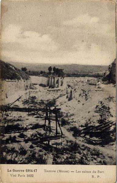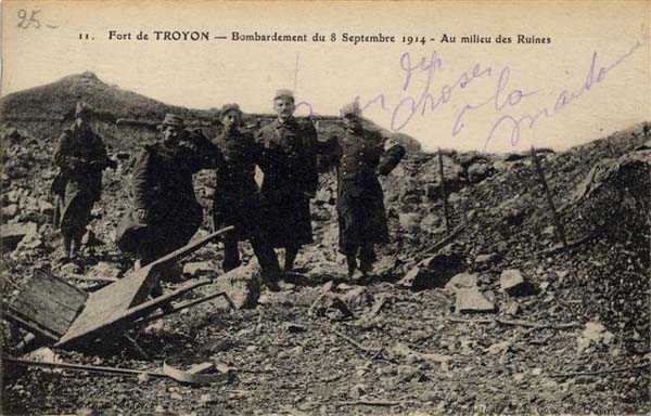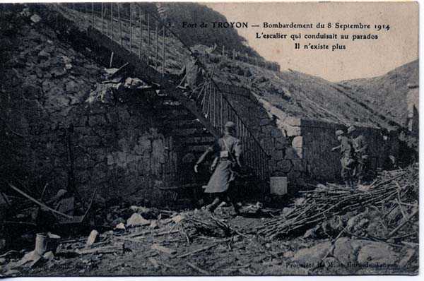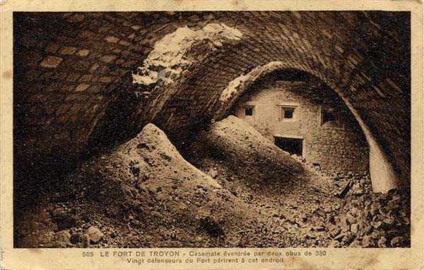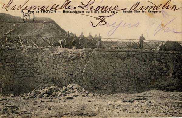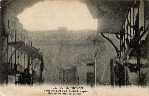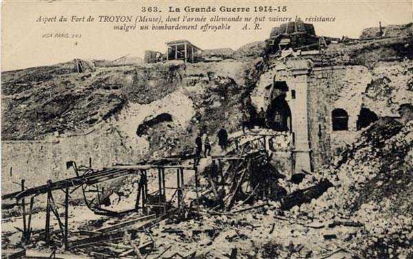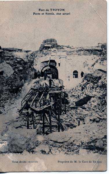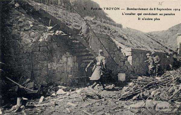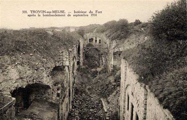 Obranná opona Hauts de Meuse, 1877-1880. 264 m n. m. Původně pro 751 mužů, 42 děl. Nazývala se Fort d'Essling. „Je stejná jako ta v Génicourtu!“ Ztratili jsme přehled o tom, kolikrát jsme toto tvrzení slyšeli. Podobnosti jsou jistě velké, ale nenavštívit jednu pod záminkou, že jsme viděli druhou, je chyba, které by se nemělo dopustit. Obecně řečeno, co se týče poslání, perimetru, ravelinu, uspořádání kasáren, pracháren, kaponiérů, pěchotních kaponiérů a ulice valu, včetně počtu přístřeškových traverz, není si na co stěžovat, je pravda, že obě pevnosti jsou identické. Jakmile se dostaneme do detailů, rozdíly se stanou zřejmými. Ravelin, čirý zázrak, zahrnuje také šest kasemat pro nepřímou palbu. Obrana jeho příkopů je však prováděna z malé kaponiéry s velmi úhledným zdivem umístěné v čele ravelinu. Zde se v ravelinu nenacházejí žádné stáje ani optický sloup. Padací most u vchodu je typu Devèze a stávající most našel své kruhové protizávaží. Pro připomenutí, tento typ mostu je relativně vzácný a v perfektním stavu se dochoval pouze jeden, a to u baterie Sanchey v Épinalu. Kartuše na štítu pevnosti byla také zbavena sutin. V hlavním městě je průchod do nádvoří kasáren otevřený k nebi; chybí zde žádné centrální pole. Pece na chléb, téměř o polovinu menší než ty v Génicourtu, protože technický list uvádí pouze dvě pece na 180 dávek na dvě pece na 300 dávek v sousední pevnosti, jsou uspořádány podélně v manipulačním prostoru (v Génicourtu příčně). Kasematy pro nepřímou palbu jsou více mimo střed. Prašné sklady jsou mírně šikmé. Svorníky na křižovatkách galerií jsou skutečně neobvyklé. Mají geometrický tvar, jehož jediný ostrý úhel systematicky ukazuje směr bojové pozice. Prohlubně kaponiérských střílen patří k nejestetičtějším ve Francii. Obecněji řečeno, práce kameníků a zedníků zde byla mnohem pečlivější než v Génicourtu, který však v tomto ohledu není bez zásluh. V Troyonu mají tedy kasematy kasáren větší reliéf, zárubně mají výstupky. Kaponiéry mají ve své klenbě velký otvor, rovnoběžný a téměř u stěny střílen děl. Střílny vykopané kolem let 1889-1890 nemají vchody v příkopu ravelinu, ale v protiskluzu rokle, jeden mezi vchodem do pevnosti a výběžkem I, druhý mezi vchodem a výběžkem V. Troyon utrpěl plnou sílu německého útoku na začátku září 1914 a způsobené škody byly více než značné. Jak se v takových případech říká (Cerfontaine, Nogent-l'Abbesse, Manonviller, Camp des Romains, Tavannes…), paradoxně je pevnost krásná na to, aby byla zničena. Jeho zející rány odhalují jeho strukturu, ale kromě architektonického aspektu je také impozantním svědkem konfrontace mezi novou zbraní (torpédovým granátem) a zastaralým štítem. Několik málo modernizací proběhne pouze během konfliktu. Na předhradí bude odlita kasemata pro dva 75mm kanóny, která bude připomínat kasematy z Bourges. Její střelecké komory jsou vedle sebe a ne v odmítnutém echelonu; také se zdají být užší a spíše určené pro umístění 95mm kanónů na krinolínových úchytech, ale abychom tuto otázku zodpověděli, budeme se tam muset vrátit, protože Troyon jsme navštívili pouze v květnu 1996 a květnu 1999, přičemž naše tehdejší znalosti neodpovídaly době, kdy jsme tyto řádky zapisovali, tedy v červenci 2008. V zadní části kasematy byl úzký vchod chráněn střeleckou střílnou. Dva zvony Pamart se dvěma cimbuřími (z nichž jedno má nouzový východ!) budou, stejně jako tato kasemata, napojeny na síť prací 17. Tato síť, která je rovněž napojena na sklady protiskluzových nábřeží, je z důvodu ochrany netopýrů z velké části nepřístupná. Nikdy jsme neviděli její plán, ani jsme ji celou neprocestovali, ale zdá se, že směrem k řece Meuse vede velmi dlouhá galerie. Dalším, méně známým projektem je instalace obrněné pozorovatelny na střeše kasáren. Tato pancéřová souprava byla v meziválečném období odstraněna, aby byla nahrazena na pevnosti Fort de Vaux, jejíž kasematy v Bourges byly restaurovány a uvedeny do provozuschopného stavu. Také během první světové války byly do cementu na zemi některých chodeb ryty granáty, odznaky a dělostřelecké kompasy. Troyon, bašta odporu proti invazi v září 1914, kdy Němci prorazili Hauts de Meuse přes Spada Gap, byl bombardován děly ráže až 305 mm. Tyto minomety se právě zúčastnily obléhání Namuru a Charlemontu. V srpnu 1914 byl Troyon vyzbrojen pouze 4 × 120 L, 12 × 90 mm a 4 kulomety kromě 12 bočních děl. Navzdory tomu se pevnosti díky vůli kapitána Heyma a odvaze posádky podařilo zabránilo obklíčení Verdunu. První bitva se odehrála od 8. do 10. září, během níž se odhaduje, že pevnost obdržela 200 střel ráže 305 mm. Během druhého útoku, od 22. do 27. září, 23. září přesně v 15 hodin, prorazil projektil strop severního střelného skladu, kde dodnes odpočívá 18 statečných mužů. V oblasti hluboce poznamenané první světovou válkou bude Troyon představovat jen nepatrnou část odvahy celého lidu tváří v tvář vetřelci. To je pravděpodobně důvod, proč pevnost upadla téměř v naprosté zapomnění. Ozývaly se hlasy protestující proti „přílišné monumentalizaci“ Verdunu ve srovnání s jinými oblastmi fronty; možná by opuštění Troyonu, ale i dalších pevností Hauts de Meuse a lokalit v Argonne, jako je Butte de Vauquois, mělo být vnímáno jako důsledek tohoto pozorování? Na druhou stranu, ne všechno se bohužel podařilo posvětit. Naštěstí dobrovolníci udržují kolo v chodu a Troyon, stejně jako Liouville a Vauquois, jsou nyní zachráněny ze smetiště dějin. Deset hektarů obklopujících pe