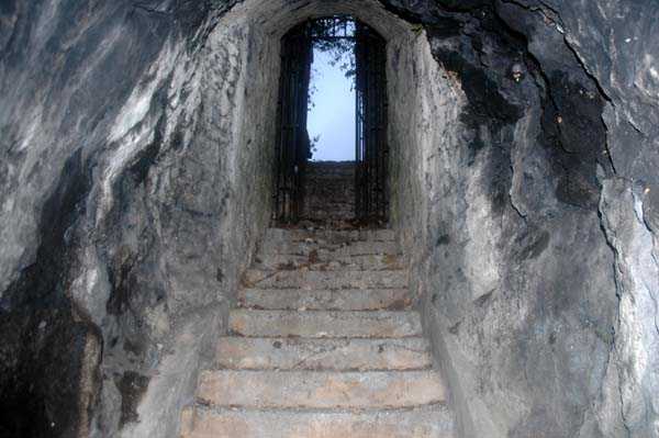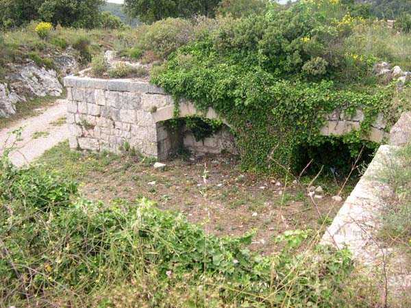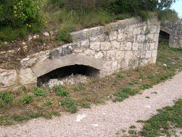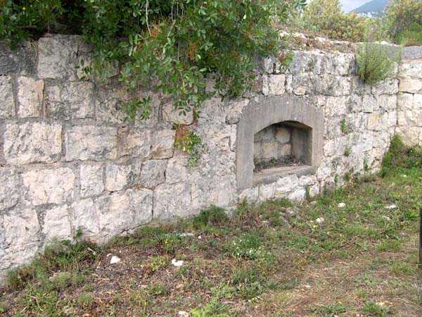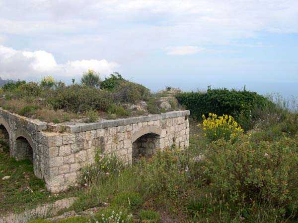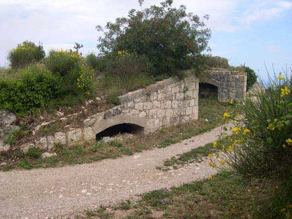 Fortress of Nice, east-northeast of the city, 188? 513 m/alt. From south to north, third of the three annex batteries of Tête de Chien fort, 1 100 m north of the fort. The access path to this battery emerges at the right rear of the line forming an "S" following the firing positions. Behind these, on the left of the path, two entrances of rock magazines are visible. Whereas in the rest of the fortress, each battery has its magazine arranged with two storage rooms placed opposite each other on either side of a central gallery, here (and probably at the battery of Baraques and at the central one of Forna), the left entrance descends to a gallery onto which, on the left, a single storage room opens, exactly inverse situation if one takes the staircase of the right entrance. These are rooms of small dimensions, about 2.5 x 2.5 m, and in the present case, kingdoms of soot and rubbish (04/2008). The battery is remarkably cleared and legible. It was excavated in the rock and shows many niches, whether at the base of the solid traverses or in the flank walls of the firing positions. Like its two sisters of Baraques and Cuolla, its mission consisted in blocking the coastal routes coming from Italy.