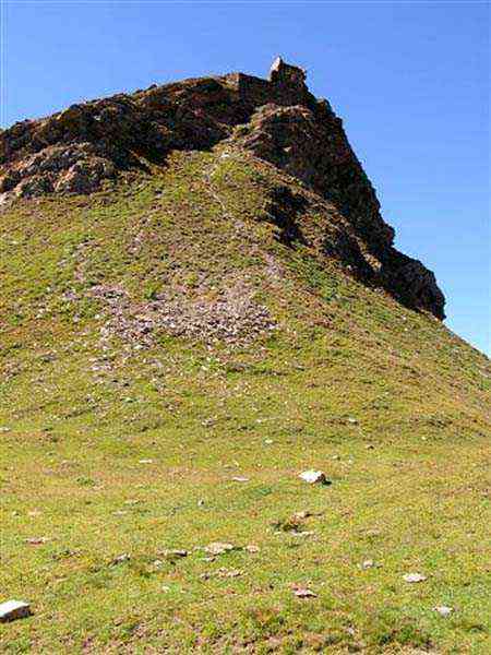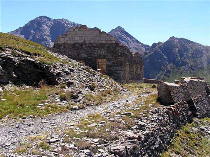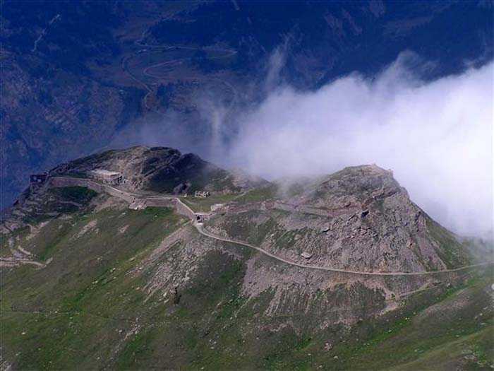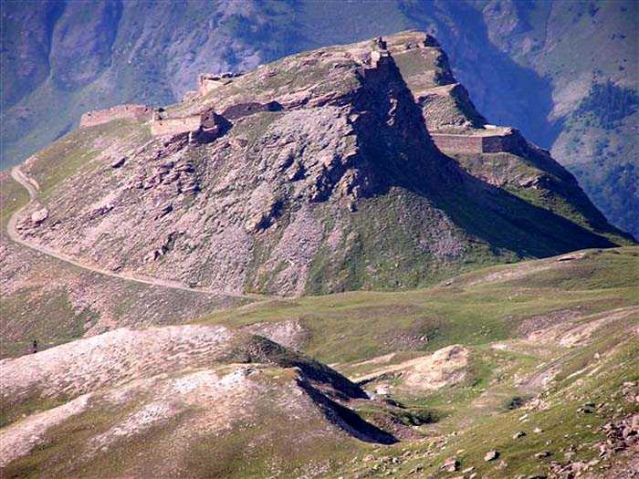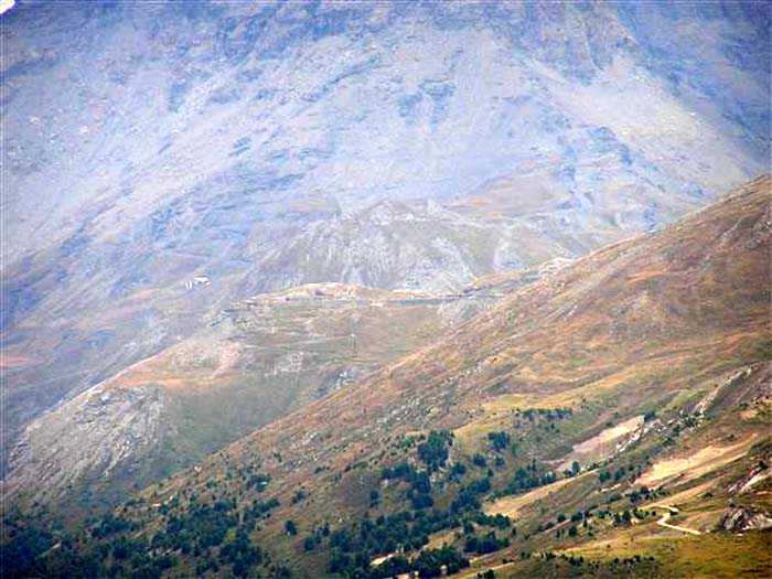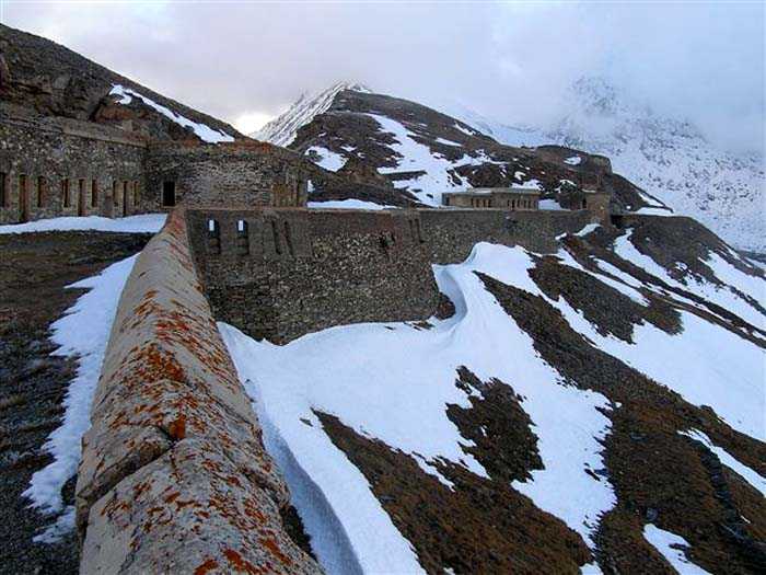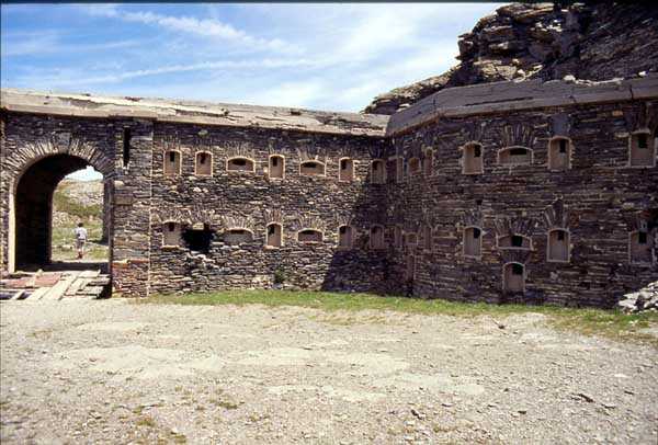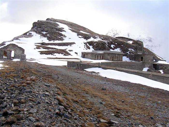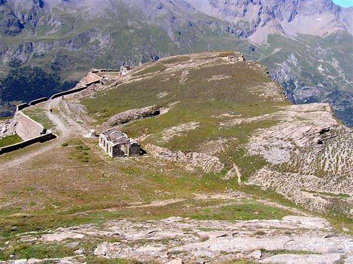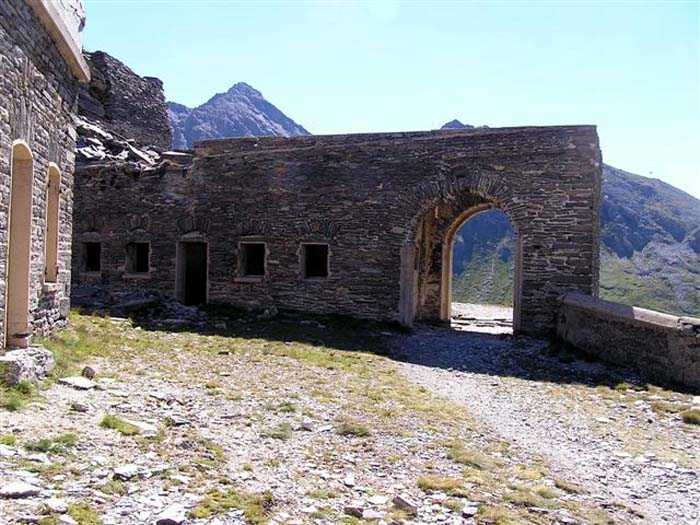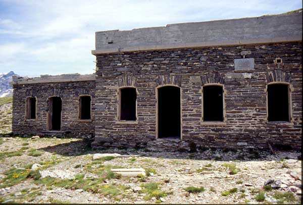 Fortress of Lanslebourg, 2,000 m south of the town, 1893-1914. A plaque placed by the municipality gives 1898 as the year of construction. 2507 – 2,529 m/alt. 288 men (157 men in 1900), 15 pieces i.e., 9 x 120 L and 6 x 65 M, including subsidiary batteries, but excluding the four rock-cut casemates, as they were unfinished. It barred with its fire the Col du Mont Cenis and countered the opposing artillery. Located astride the two hillocks that form the Petite Turra, directly above the Col du Mont Cenis which it dominates by 400 m, its situation on the edge of a rocky ridge gives it excellent views of the Mont Cenis plateau and the old Italian forts that blocked the entire hollow where the Lac du Mont-Cenis hides (see Lanslebourg). Moreover, it would be regrettable, if one visits the site, not to at least visit that of Ronce (1877) whose beautiful architecture blends perfectly into a grandiose setting. The views from the Petite Turra also extended over the Haute Maurienne upstream of Lanslebourg. The fort integrates perfectly into the relief by adopting a very elongated shape in the north-south direction; the buildings are built on the reverse slope of the hillocks on a vast platform on the west side. The perimeter is defended by a dry-stone escarpment describing a broken line, surmounted by a parapet of lean concrete pierced with rifle loopholes, benefiting from a single small bastion in the southwest salient; bordered by a precipice on the east side (Col du Mont Cenis); finally by a rough excavation ditch on the north slope (Lanslebourg). Access is via two similar entrances, equipped with a drawbridge crossing a ditch 3 m deep. In the raised position, the drawbridge folded back onto a porch set into a crenellated building forming a guardhouse and constituting the only defence of the access. The north entrance allows access to a subsidiary battery, the south entrance constitutes the main access. It is worth dwelling on the presence of two entrances, apart from the rarity of the thing, nothing on site justifies this option. Indeed, the north subsidiary battery is served by a road grafted onto the access road; therefore, there is no need to pass through the fort. Past the south entrance, one discovers a first barracks, topped with a flat roof forming a terrace; composed of 2 large dormitories and 2 other smaller ones. A corridor at the rear protects from humidity and ensures circulation in case of bad weather. We arrive at the parade ground, an important earthwork located between the hillocks. In the centre stands the officers' hut, an ordinary masonry construction. Next to it a fountain of lean concrete, fed by a spring captured at the foot of the Pas de la Beccia, conveyed by means of a channel and a reinforced concrete pipeline totalling 2000 m in length. To the right, a piece of escarpment closes the only passage offered by the eastern slope. If we continue the visit following the earthwork towards the north, we pass by the entrance to a rock-cut chamber, which the plan indicates as a cistern, but whose collapse prevents any confirmation. A little further on, a building houses the latrines. Then comes the second, larger barracks, taking the shape of an "L". We find there successively 5 dormitories for the troops, 3 rooms for non-commissioned officers, finally 2 other dormitories for the officers. The flat roof collected rainwater to supply an underground cistern of a dormitory. A corridor at the rear of the building facilitated circulation in bad weather. Arriving at the northern end, an ordinary masonry building faces Lanslebourg. It is a magazine, in which a kitchen has been arranged. All the buildings are of jointed dry stones, entrances included. At the summit of the north hillock, a platform accommodated 4 pieces. Another for 2 pieces is located on the flank of the south hillock. Both are intended for mountain pieces whose ballistic capabilities are perfectly suited for firing on the Col du Mont Cenis. They are devoid of parapet and ammunition niches. Access is by a good covered mule track. Intelligence was provided by an observatory, judiciously placed on the southeast salient. This construction of jointed dry stones is surmounted by a platform bordered by a parapet of lean concrete. A trench cut from the rock allowed sheltered access. To complete the position, two subsidiary batteries were built. The first, located on the north slope below the fort, comprises a platform for 3 pieces directed towards the Haute Maurienne. It was served by 2 roads, one descends from the north entrance in many hairpin bends, the other crosses the western flank below the fort to join the strategic road at the Collet. It is at the Collet that the second subsidiary battery is located, comprising 6 platforms staggered in height, aimed at the Mont Cenis plateau. These subsidiary batteries are devoid of parapet and ammunition niches; they are designed to receive 120 L/78 pieces (95 mm guns have also been recorded). Access from Termignon is via a strategic road shared with the Turra barracks. As the pieces were in the open air, and therefore vulnerable, it was undertaken to place them under rock. Four gun casemates are dug under the north hillock. The casemates are connected at the rear by a transverse gallery, a gallery onto which the two entrances are grafted, opening on either side of the north barracks. The work, begun in 1898, remained unfinished in 1914. These casemates were to house 4 pieces of 120 L/78. One must wait for the Interwar period for the work to be completed. The construction site was used to transform the central casemates – No. 2 and 3 – in order to arm them with 75/97 pieces on an Arbel platform. At the same time, emplacements for automatic weapons are built on the south hillock (firing towards the Beccia); small constructions of dry stones covered with a roof of stone slabs on a wooden frame, which, although exceeding the scope of this study, are well worth a look! A cable car 