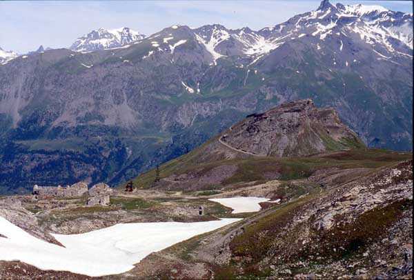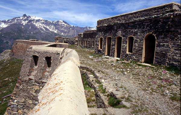 Festung von Lanslebourg, 2 000 m südlich der Stadt, 1893-1914. Eine von der Gemeinde angebrachte Tafel nennt 1898 als Baujahr. 2507 – 2 529 M/ü. M. 288 Mann (157 Mann im Jahr 1900), 15 Geschütze, nämlich 9 x 120 L und 6 x 65 M, einschließlich Neben-Batterien, jedoch ohne die vier Fels-Kasematten, da unvollendet. Es sperrte mit seinen Feuern den Col du Mont Cenis und bekämpfte die gegnerische Artillerie. Gelegen auf den beiden Hügeln, die die Petite Turra bilden, direkt über dem Col du Mont Cenis, den es um 400 m überragt, verleiht ihm seine Lage am Rand eines Felsgrats eine ausgezeichnete Sicht auf das Plateau des Mont Cenis und die alten italienischen Forts, die die ganze Senke versperrten, in der sich der Lac du Mont-Cenis versteckt (siehe Lanslebourg). Zudem wäre es bedauerlich, wenn man vor Ort ist, nicht wenigstens das von Ronce (1877) zu besichtigen, dessen schöne Architektur sich perfekt in eine grandiose Landschaft einfügt. Die Aussicht von der Petite Turra reichte auch auf das obere Maurienne-Tal stromaufwärts von Lanslebourg. Das Fort fügt sich perfekt in das Relief ein, indem es eine sehr langgestreckte Form in Nord-Süd-Richtung annimmt; die Gebäude sind auf der Westseite auf einer weiten Plattform am Gegenhang der Hügel gebaut. Der Umfang wird durch eine Trockenstein-Eskarpemauer verteidigt, die eine gebrochene Linie beschreibt, überragt von einer Brustwehr aus Magerbeton mit Schießscharten, mit einem einzigen kleinen Bollwerk im südwestlichen Ausleger; begrenzt durch einen Steilhang auf der Ostseite (Col du Mont Cenis); schließlich durch einen aus dem Felsausbruch belassenen Graben an der Nordflanke (Lanslebourg). Der Zugang erfolgt über zwei ähnliche Eingänge, die mit einer Zugbrücke ausgestattet sind, die einen 3 m tiefen Graben überquert. In angehobener Position klappte die Zugbrücke auf einen Eingang zurück, der in ein zinnenbewehrtes Gebäude eingelassen war, das als Wachhaus diente und die einzige Verteidigung des Zugangs darstellte. Der Nordeingang ermöglicht den Zugang zu einer Neben-Batterie, der Südeingang hingegen stellt den Hauptzugang dar. Es lohnt sich, auf das Vorhandensein von zwei Eingängen einzugehen, abgesehen von der Seltenheit der Sache, nichts vor Ort rechtfertigt diese Option. Tatsächlich wird die nördliche Neben-Batterie über eine Straße erschlossen, die an die Zufahrtsstraße angeschlossen ist; es besteht also keine Notwendigkeit, durch das Fort zu fahren. Nach dem Südeingang entdeckt man eine erste Unterkunftsbaracke, mit einem flachen Dach, das eine Terrasse bildet; bestehend aus 2 großen Stuben und 2 weiteren kleineren. Ein Gang auf der Rückseite schützt vor Feuchtigkeit und sorgt für Zirkulation bei schlechtem Wetter. Wir gelangen zum Exerzierplatz, einer wichtigen Aufschüttung zwischen den Hügeln. In der Mitte thront die Offiziersbaracke, ein Bau aus gewöhnlichem Mauerwerk. Daneben ein Brunnen aus Magerbeton, gespeist von einer Quelle am Fuß des Pas de la Beccia, herangeführt mittels eines Kanals und einer Rohrleitung aus Stahlbeton mit einer Gesamtlänge von 2000 m. Rechts schließt ein Stück Eskarpemauer den einzigen Durchgang, den die Ostflanke bietet. Wenn wir den Rundgang fortsetzen und der Aufschüttung nach Norden folgen, kommen wir am Eingang zu einem Felsraum vorbei, den der Plan als Zisterne angibt, aber dessen Verschüttung jede Bestätigung verhindert. Etwas weiter beherbergt ein Gebäude die Latrinen. Dann kommt die zweite, größere Unterkunftsbaracke, die die Form eines « L » hat. Wir finden dort nacheinander 5 Stuben für die Truppe, 3 Zimmer für Unteroffiziere, schließlich 2 weitere Stuben für die Offiziere. Das flache Dach sammelte Regenwasser, um eine Zisterne im Untergeschoss einer Stube zu speisen. Ein Gang auf der Rückseite des Gebäudes erleichterte die Bewegung bei schlechtem Wetter. Am nördlichen Ende angekommen, steht ein Gebäude aus gewöhnlichem Mauerwerk Lanslebourg gegenüber. Es handelt sich um ein Magazin, in dem eine Küche eingerichtet wurde. Alle Gebäude sind aus verfugten Trockensteinen, einschließlich der Eingänge. Auf der Spitze des Nordhügels nahm eine Plattform 4 Geschütze auf. Eine weitere für 2 Geschütze befindet sich an der Flanke des Südhügels. Beide sind für Gebirgsgeschütze bestimmt, deren ballistische Fähigkeiten sich perfekt für das Beschießen des Col du Mont Cenis eignen. Sie sind ohne Brustwehr und Munitionsnischen. Der Zugang erfolgt über einen guten, gedeckten Maultierpfad. Die Aufklärung lieferte ein Beobachtungsposten, geschickt auf dem südöstlichen Ausleger platziert. Dieser Bau aus verfugten Trockensteinen ist von einer Plattform überragt, die von einer Brustwehr aus Magerbeton begrenzt wird. Ein aus dem Fels geschlagener Graben ermöglichte einen gedeckten Zugang. Um die Stellung zu vervollständigen, wurden zwei Neben-Batterien gebaut. Die erste, an der Nordflanke unterhalb des Forts gelegen, umfasst eine Plattform für 3 Geschütze, die auf das obere Maurienne-Tal gerichtet sind. Sie wurde von 2 Straßen erschlossen, die eine führt von der Nordzufahrt in vielen Serpentinen hinab, die andere durchquert die Westflanke unterhalb des Forts, um am Collet auf die strategische Straße zu treffen. Am Collet ist die zweite Neben-Batterie angelegt, bestehend aus 6 versetzt in der Höhe angeordneten Plattformen, die auf das Plateau des Mont Cenis gerichtet sind. Diese Neben-Batterien sind ohne Brustwehr und Munitionsnischen; sie sind konzipiert, um 120 L/78-Geschütze aufzunehmen (auch 95-mm-Kanonen sind verzeichnet). Der Zugang von Termignon erfolgt über eine strategische Straße, die mit den Baracken der Turra gemeinsam genutzt wird. Da die Geschütze im Freien und daher verwundbar standen, unternahm man es, sie unter Fels zu bringen. Vier Geschützkasematten werden unter dem Nordhügel gegraben. Die Kasematten sind rückwärtig durch einen Quergang verbunden, an den die beiden Eingänge angeschlossen sind, die beidseits