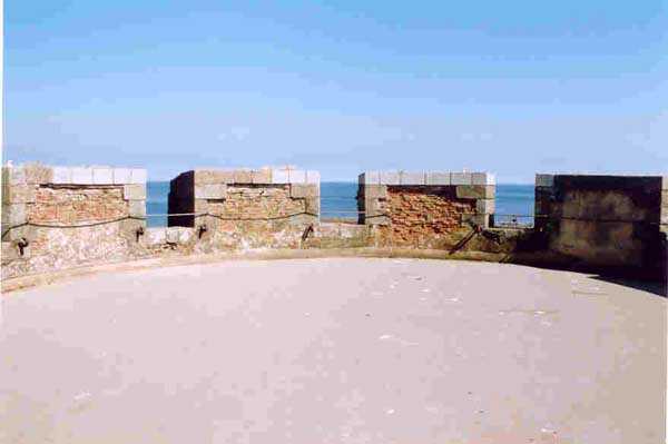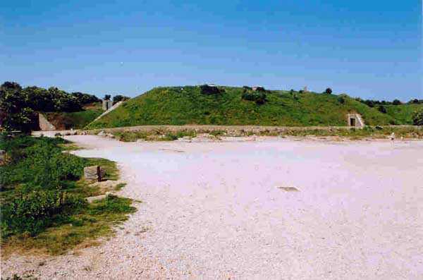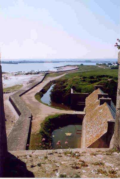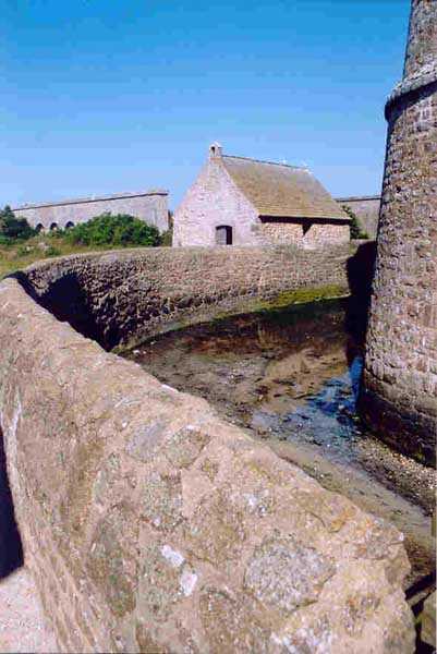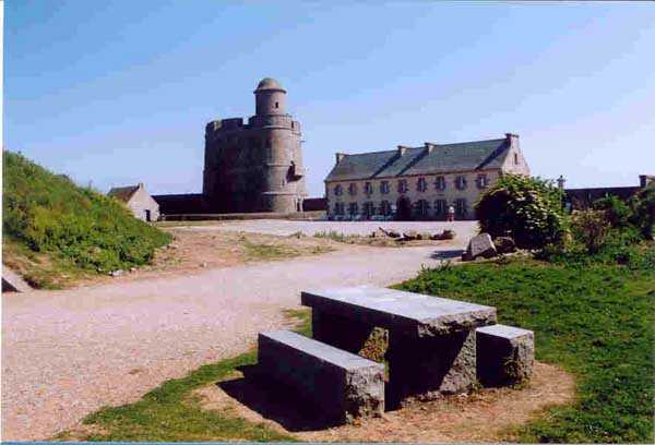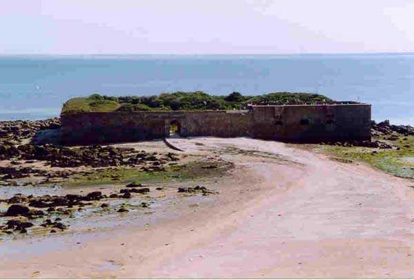 Place de Cherbourg, Saint-Vaast-la-Hougue. L'île de Tatihou, à 1200 m à l'ENE du rivage de Saint-Vaast-la-Hougue, peut-être atteinte pédestrement à marée basse. Elle mesure environ 750 m de longueur pour 500 de large. En 1722, une levée de terre au profil bastionné et encadrée de maçonneries, est élevée sur le périmètre de l'île. En 1723, on crée un lazaret qui occupe la partie occidentale de l'île, lazaret entouré par un mur percé de créneaux défensifs. À l'opposé, une tour due à l'ingénieur De Combes, haute de 27 m et large à sa base de 26 m est érigée sur trois niveaux. Elle devait abriter 80 hommes et sa plate-forme sommitale pouvait accueillir 10 pièces d'artillerie. Il faut attendre la fin du XVIIIè ou le début du XIXè siècle pour que le fort carré, à trois bastions (la tour occupant la place du quatrième) soit aménagé. Ses fossés étaient remplis d'eau de mer. Une caserne, datant de 1818, est incorporée au rempart entre l'entrée et la tour, tandis qu'une chapelle contemporaine de la tour est transformée en poudrière. Entre 1875 et 1880, l'intérieur du fort est modifié. On y construit un casernement à 4 travées recouvertes de terre, tournant le dos au large. À ce casernement est accolé un magasin à poudre modèle 1879. Il a une surface utile de 10 x 5,5 m, possède un seul créneau à lampe et ses évents latéraux ont la particularité de communiquer directement, sans baïonnette, avec les gaines latérales. Le bastion du saillant II reçoit une plate-forme pour deux canons de 16 c. La courtine entre les bastions des saillants II et III reçoit deux plates-formes pour, chacune, deux autres canons de 16 c, plates-formes séparées par une traverse pleine. Le bastion du saillant III était prévu pour les communications optiques avec les îles de Saint-Marcouf. La courtine le séparant de la tour possédait une plate-forme de tir pour deux obusiers de 22 c. Il semble bien qu'une garnison s'y soit tenue jusqu'en 1914. Un plan de feux des environs de 1895 y indique 3 x 95 mm. Durant la première guerre mondiale, l'île sera un camp de prisonniers. Aujourd'hui, en juin 2005, le fort est d'accès libre, tout comme son casernement et la tour. L'île abrite de nombreux oiseaux qu'il sied de laisser tranquille. L'ensemble est bien entretenu et le droit d'entrée est compris dans le billet de l'amphibie qui vous mène jusqu'à l'île.