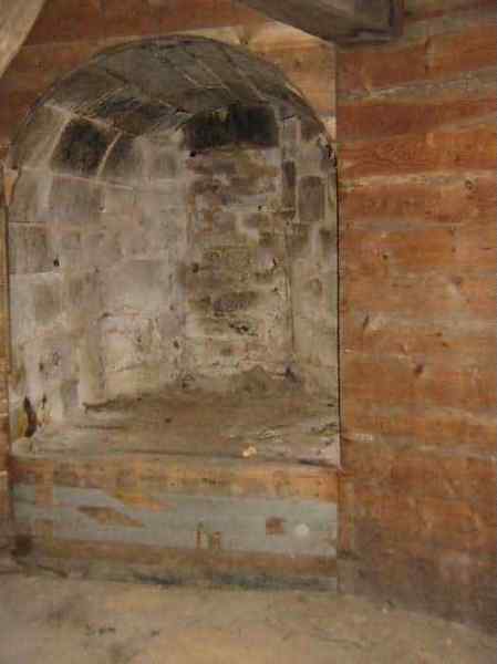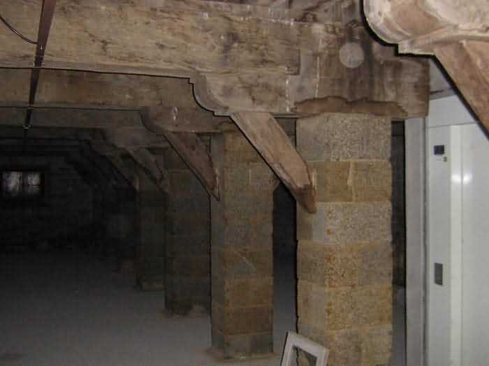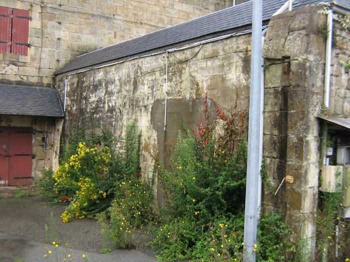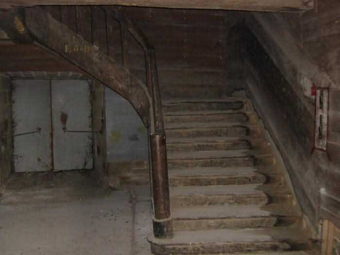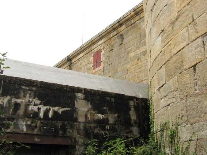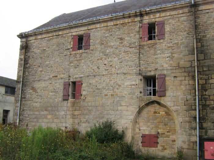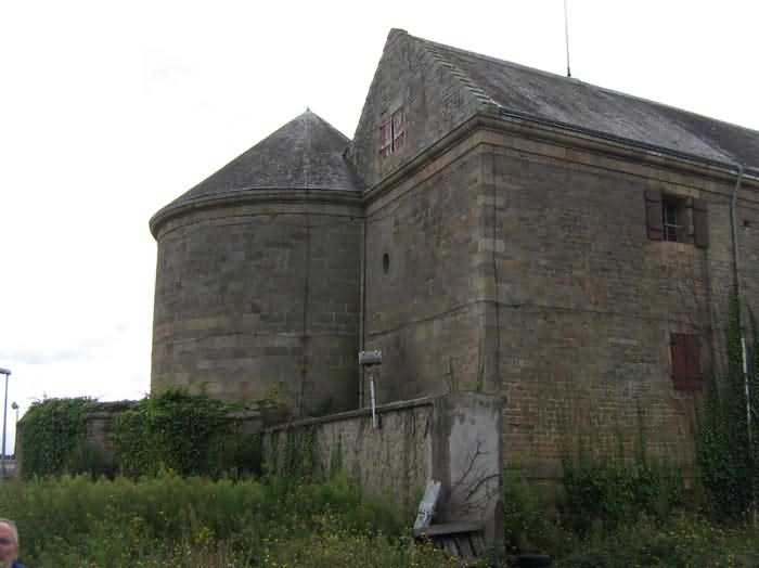 Place de Lorient, nord de la place, ± 1885. 1000 m au sud-est du hameau de Kerdual, sur la rive droite du Scorff. On se serait attendu à trouver à Lorient des magasins centraux identiques à ceux des pyrotechnies du Nardouet à Cherbourg ou Saint-Nicolas à Brest. En fait, si c'est le cas, ou presque, pour, au moins, le magasin de Sac'h Quéven, la poudrière de Tréfaven n'est rien d'autre que le corps de logis d'un vieux château. La poudrière de Tréfaven est le plus vieux bâtiment de la ville de Lorient, remontant avant la création de la Compagnie des Indes. Il s’agit donc du corps de logis d’un vieux château, remontant au XIVème siècle mais il n'aurait été transformé en place forte qu'en 1482 par Louis II de Rohan-Gémené. Les avatars de l'Histoire ne nous ont fait parvenir que ce corps de logis de 35 m de longueur flanqué de l'une des deux tours de 18,50 m de hauteur pour un diamètre de 15,50 m. Au XVIIIème siècle, la Compagnie des Indes y entrepose déjà des poudres. Devenu bagne sous la Révolution, le château est acheté en 1805 par Napoléon qui l'affecte à la Marine Impériale. Depuis, le corps de logis a servi de magasin à poudre jusqu'en 1973. L’intérieur montre des planchers de chêne accrochés à des poteaux du même bois. Les murs très épais maintenaient une température constante. Les escaliers sont lambrissés, probablement de châtaigner. Autour de ce château en parfait état, on peut voir des bâtiments pyrotechniques légers, vandalisés, et deux blockhaus allemands, l’un ayant été utilisé encore récemment pour loger des artifices pyrotechniques, l’autre, un abri pour le personnel, présentant quelques fresques. Parfois désigné comme centre de pyrotechnie de Bois du Château, les lieux sont toujours occupés par la Marine (09/2007) et interdits d'accès.