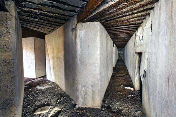 Das südliche Pulvermagazin der Zitadelle von Verdun, erbaut 1877 in der Nähe des Mortier-Tores, ist ein typisches Beispiel für die Munitionslager des Séré-de-Rivières-Systems. Das vollständig gemauerte, mit Erde überdeckte Gewölbe misst etwa 30 Meter in der Länge und 7 Meter in der Breite. Der längsgerichtete Grundriss diente der Sicherheit – die Seitenmauern sind verstärkt, der Zugang erfolgt über eine abgewinkelte Zugangsschleuse, die den Hauptraum vor Druckwellen schützt. In Friedenszeiten konnten hier bis zu 80 Tonnen Schwarzpulver in Fässern oder Kisten gelagert werden, entlang eines gepflasterten Mittelgangs. Unmittelbar daneben liegt das Mortier-Tor, das die Verbindung zu den südlichen Verteidigungsabschnitten herstellte. Eine versteckte Treppe in der Mauer führte zur tieferliegenden unterirdischen Galerie. Dieses Ensemble veranschaulicht eindrucksvoll die technischen Vorsichtsmaßnahmen der französischen Befestigungsingenieure am Ende des 19. Jahrhunderts, die Pulverlager strikt von Kasernen und Magazinen trennten, um die Sicherheit der Besatzung zu gewährleisten.