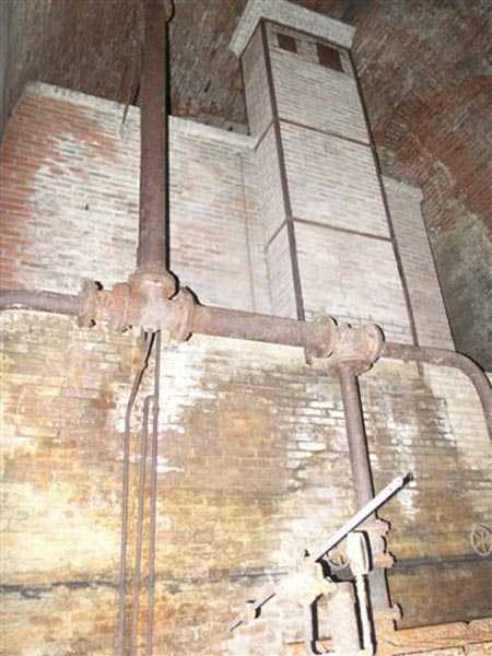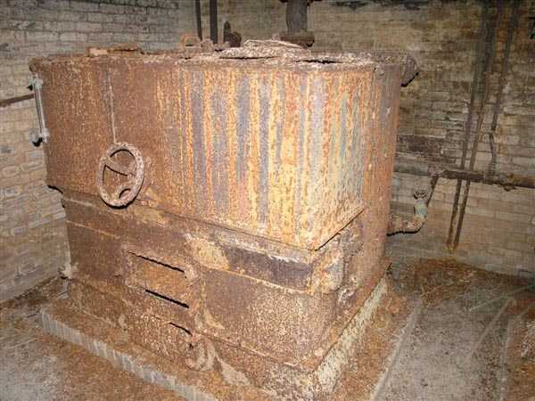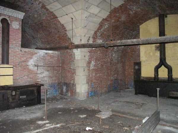 The kitchens and boiler room of Verdun’s citadel, integrated into the underground network, illustrated the aim of providing a complete logistical service to the garrison while remaining protected from enemy fire. The boiler room, equipped with a La Gauloise boiler and hot-water coils, supplied the intermediate-level barracks and kitchens. The nearby kitchens featured François-Vaillant and Valance ovens, capable of preparing meals for hundreds of soldiers, including a decoy oven to mislead visitors or potential attackers. The underground layout ensured safety and continuity of service even during bombardments, with protected access and rooms isolated by thick walls and vaulted ceilings. This organization demonstrates the sophistication of logistical and sanitary facilities in Séré de Rivières fortifications, where even purely technical buildings were designed to optimize defense while ensuring minimal comfort for the troops.