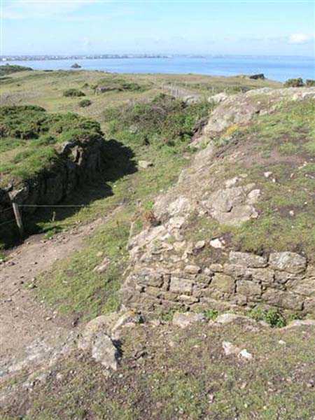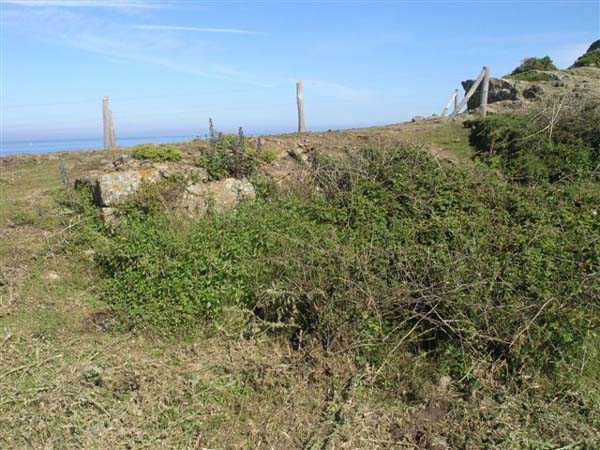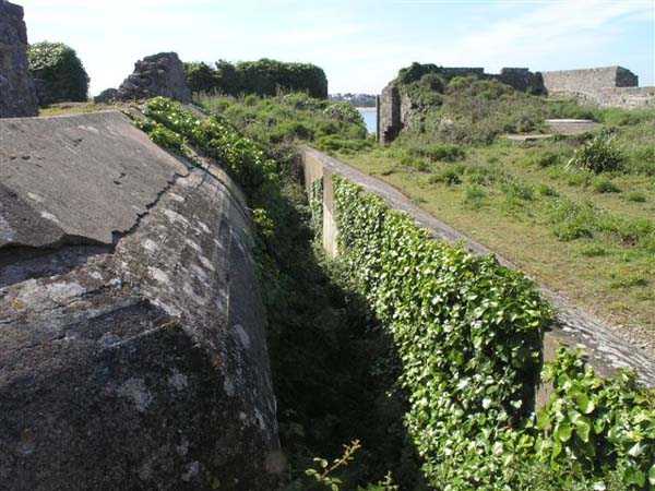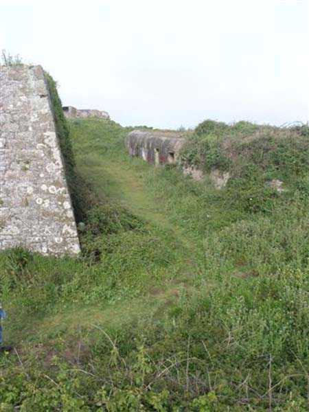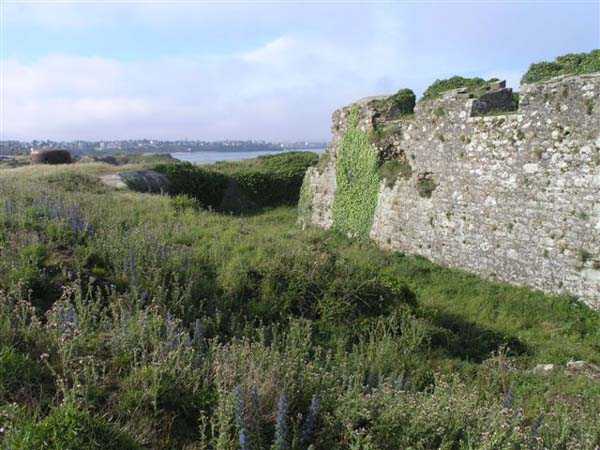 Fortress of Saint-Malo, 4,000 m northeast of the old town. 25 m above sea level. The occupation of the position at Pointe de la Varde allowed for the sweeping of the passage of the Fosse aux Normands, a deep channel enabling the approach of enemy squadrons. As early as 1694, Vauban is said to have had a fort built there; other sources indicate that it was not until 1734 that a few artillery pieces were installed behind a parapet, and that one had to wait until 1748 to have a true defensive construction on the ruins of the old Fort d’Arboulé. This fort, of limited extent, rests its head front on the natural cliff face and its land front comprises two bastions separated by a curtain wall. Its current entrance is in its southern flank, but originally it opened perpendicular to the sea, between the two bastions. In Year II of the Republic, the fort was armed with 4 guns of 48, the strongest caliber then available. It seems that things remained unchanged until 1890. Probably simultaneously with the decision to fortify Cézembre, six pairs of platforms as well as three pairs of ammunition niches were established outside the fort, on the point proper, to accommodate six guns of 95 mm on field mounts. The planned number, however, seemed to be eight, but the plan in our possession and on-site observation indicate only six. The fort's quarters, a non-bombproof building, were put back into service and the powder magazine located in the northern bastion was reduced to dimensions of 7 x 4 m by the installation of an entrance airlock, an airlock containing a lamp embrasure of 40 x 40 cm, identical to the one noted in the guardhouse model 1846 of the eastern hillock of Cézembre. In the following years, a small open command post was set up between the two northernmost platforms. In 1898, a source indicates that the number of pieces was increased to 14, but nothing on site confirms this. A source indicates that it was demilitarized in 1900, but this seems premature to us, especially so shortly after the Fashoda Incident. Fort de la Varde was somewhat remodeled by the Germans during the Second World War, but most of the damage that can be observed today (06/2007) is the result of French exercises in the 1950s and 1960s. Thus, the quarters, having survived the bombings, are no longer present today. The powder magazine may be accessible through a breach in the flank of the northern bastion and, on the point itself, the platforms and niches are clearly visible. The fort is in principle not accessible but the fence has lost all its deterrent power. The installations on the point, on the other hand, can be freely accessed. Sometimes designated as Fort d’Arboulé or also as Pointe Lavarde.