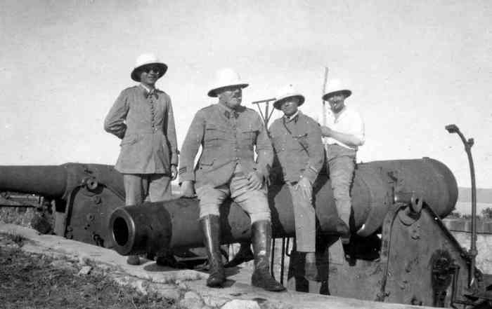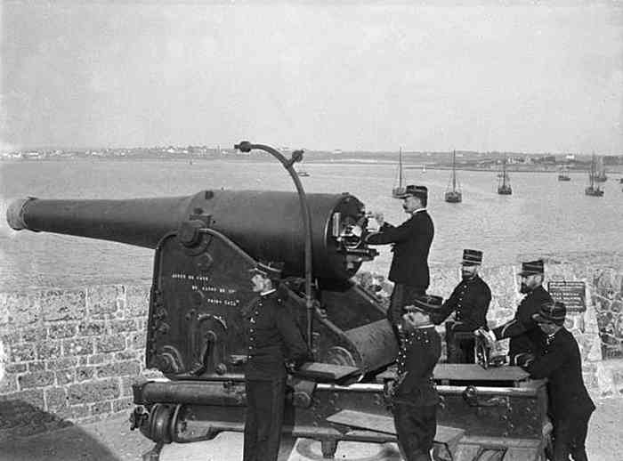 Diego-Suarez. Située sur le cap Vatomainty, à l’altitude de 75 mètres, cette batterie de bombardement était armée de 4 canons G de 19 cm Mle 1875-76 sur affût G PC. Elle devait à l’origine, comme la batterie du Phare, et celle d’Andrahompotsy, être armée de canons M de 194 Mle 1870-93. Seule l’urgence de la situation, créée par les événements de Fachoda, a pu justifier l’installation de ces matériels à la portée limitée à 9 000 mètres et à la cadence de tir d’un coup par pièce toutes les 3 minutes. L’installation des pièces sur affût à pivot central est nécessitée par la mission de la batterie, placée pratiquement au centre de la baie de Diego-Suarez, et en couvrant tous les mouillages. Les pièces sont groupées par deux dans des alvéoles maçonnées. La batterie ne pouvant compter sur un magasin de groupe, du fait de son isolement, les projectiles et les poudres sont entreposés dans un magasin caverne. Seul de ce modèle à Diego-Suarez, il se compose d’une galerie bétonnée, sur laquelle sont greffées des alvéoles de stockage en partie brutes de déroctage. Le ravitaillement des pièces est assuré par un monte-charge, doublé d’un escalier, qui débouche derrière les affûts. Les pièces sont toujours en place, quoique pétardées. Sur deux d’entre-elles, il manque près d’un mètre de la volée. Mais, comme à la batterie du Cap Miné, on ne peut qu’être étonné de voir ces pièces toujours à poste, plus d’un siècle après leur installation. Des artifices d’entraînement et des boîtes de ration vides témoignent de l’utilisation du site par l’armée malgache. Depuis la rédaction de ce texte, les matériels ont malheureusement subi la rage des ferrailleurs, qui ont découpé les affûts. Il ne reste que les tubes, gisant sur la plateforme. Diese Bombardierungsbatterie auf Kap Vatomainty in 75 Metern Höhe war mit 4 G-Kanonen 19 cm Mle 1875-76 auf G-Lafette PC (Lafette mit zentralem Drehpunkt) bewaffnet. Ursprünglich sollte sie, wie die Batterie des Phare und die von Andrahompotsy, mit M-Kanonen 194 mm Mle 1870-93 ausgerüstet werden. Nur die durch die Faschoda-Krise geschaffene Dringlichkeit konnte die Installation dieser Geschütze mit einer auf 9 000 Meter begrenzten Reichweite und einer Feuerrate von einem Schuss pro Geschütz alle 3 Minuten rechtfertigen. Die Installation der Geschütze auf Lafetten mit zentralem Drehpunkt war durch die Aufgabe der Batterie erforderlich, die praktisch im Zentrum der Bucht von Diego-Suarez liegt und alle Ankerplätze abdeckt. Die Geschütze sind paarweise in gemauerten Zellen angeordnet. Da die Batterie aufgrund ihrer isolierten Lage nicht auf ein Gruppenmagazin zählen konnte, wurden die Geschosse und Pulver in einem Kavernenmagazin gelagert. Als einziges seiner Art in Diego-Suarez besteht es aus einer betonierten Galerie, an die teilweise im Rohzustand belassene Lagerzellen angebaut sind. Die Versorgung der Geschütze erfolgt über einen Lastenaufzug, ergänzt durch eine Treppe, die hinter den Lafetten mündet. Die Geschütze sind noch vorhanden, wenn auch zerstört. Bei zweien fehlt fast ein Meter des Rohres. Aber wie bei der Batterie des Cap Miné kann man nur erstaunt sein, diese Geschütze mehr als ein Jahrhundert nach ihrer Installation noch an ihrem Platz zu sehen. Übungsmunition und leere Rationsdosen zeugen von der Nutzung des Ortes durch die madagassische Armee. Seit der Abfassung dieses Textes haben leider die Schrottdiebe ihr Unwesen getrieben und die Lafetten zerschnitten. Es sind nur noch die Rohre übrig, die auf der Plattform liegen. Deze bombardementsbatterij, gelegen op Kaap Vatomainty op een hoogte van 75 meter, was bewapend met 4 G-kanonnen van 19 cm Mle 1875-76 op G-affuit PC (affuit met centraal draaipunt). Oorspronkelijk zou zij, net als de batterij van de Vuurtoren en die van Andrahompotsy, bewapend worden met M-kanonnen van 194 mm Mle 1870-93. Alleen de urgentie van de situatie, gecreëerd door de Fashoda-crisis, kon de installatie rechtvaardigen van dit materieel met een bereik beperkt tot 9 000 meter en een vuursnelheid van één schot per stuk om de 3 minuten. De installatie van de stukken op affuiten met centraal draaipunt werd vereist door de taak van de batterij, geplaatst praktisch in het centrum van de baai van Diego-Suarez, en die alle ankerplaatsen bestrijkt. De stukken zijn gegroepeerd per twee in gemetselde cellen. Omdat de batterij vanwege haar geïsoleerde ligging niet kon rekenen op een groepsmagazijn, werden de projectielen en kruit opgeslagen in een grotmagazijn. Als enige van dit model in Diego-Suarez bestaat het uit een betonnen galerij, waaraan gedeeltelijk ruw uitgehakte opslagcellen zijn aangebouwd. De bevoorrading van de stukken wordt verzorgd door een goederenlift, verdubbeld door een trap, die achter de affuiten uitkomt. De stukken zijn nog aanwezig, zij het opgeblazen. Bij twee ervan ontbreekt bijna een meter van de loop. Maar net als bij de batterij van Kaap Miné kan men alleen maar verbaasd zijn deze stukken nog op hun post te zien, meer dan een eeuw na hun installatie. Oefenmunitie en lege rantsoenblikken getuigen van het gebruik van de site door het Malagassische leger. Sinds de redactie van deze tekst heeft het materieel helaas te lijden gehad onder de woede van de schroothandelaren, die de affuiten hebben uitgesneden. Er resten alleen de lopen, liggend op het platform. Located on Cape Vatomainty, at an altitude of 75 metres, this bombardment battery was armed with 4 G guns of 19 cm Mle 1875-76 on G mounting PC (mounting with central pivot point). Originally, like the Lighthouse battery and that of Andrahompotsy, it was to be armed with M guns of 194 mm Mle 1870-93. Only the urgency of the situation, created by the Fashoda crisis, could justify the installation of these pieces with a range limited to 9,000 metres and a rate of fire of one round per piece every 3 minutes. The installation of the pieces on central pivot 