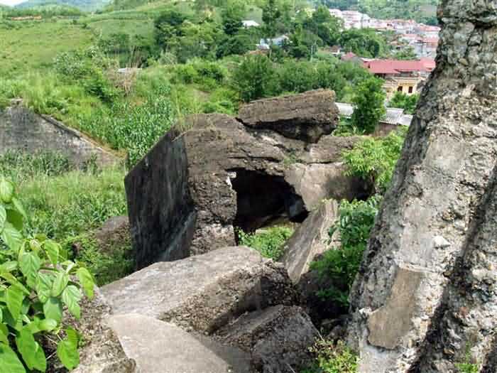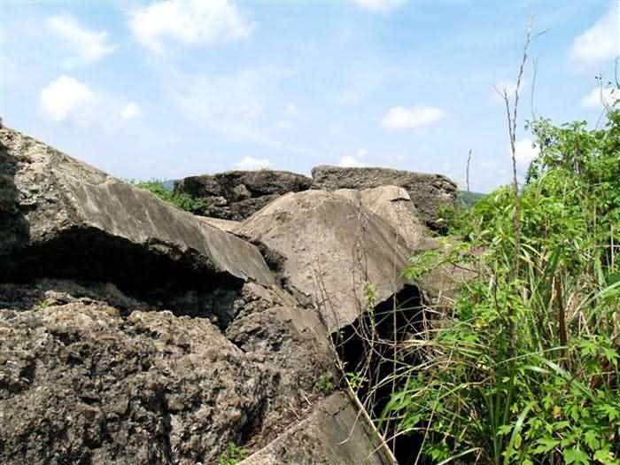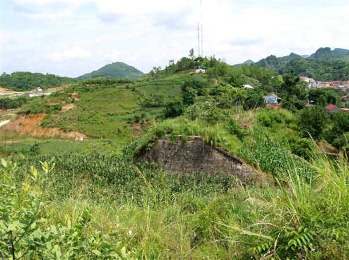 Dong Dang (colonial governor, killed at Long Pont in July 1918 at the head of his company of the RICM). Modern work built between 1942 and 1945 on the site of a 19th‑century post for the defence of the “Gate of China”. Constructed above the railway line, it comprises a masonry enclosure flanked by concrete casemates for machine‑guns and an underground infrastructure linked to concrete casemates armed with machine‑guns and two 75‑mm guns on carriages Mle 1916. Under the orders of Commandant Soulier and Captain Annosse, commanding the 6th company of the 2/3rd Régiment de tirailleurs tonkinois, the garrison put up heroic resistance during the Japanese attack of 9 March 1945. Commandant Soulier was killed in the fighting, and the survivors were massacred at its conclusion on the 10th. Captain Annosse was executed with a bullet to the head, and his men were beheaded. The work was destroyed by Chinese troops before their departure in 1946. Today it still shows its blocks blown open by heavy explosive charges, and its lower levels are inaccessible. Two blockhouses have been built on the superstructures, possibly at the time of the Sino‑Vietnamese war in February 1979. A stairway, dating from the same period, descends into one of the destroyed blocks. It leads to a shaft down to the lower levels, unfortunately sealed. It is likely that these were used as shelters during that period. JJM 04/07/2008