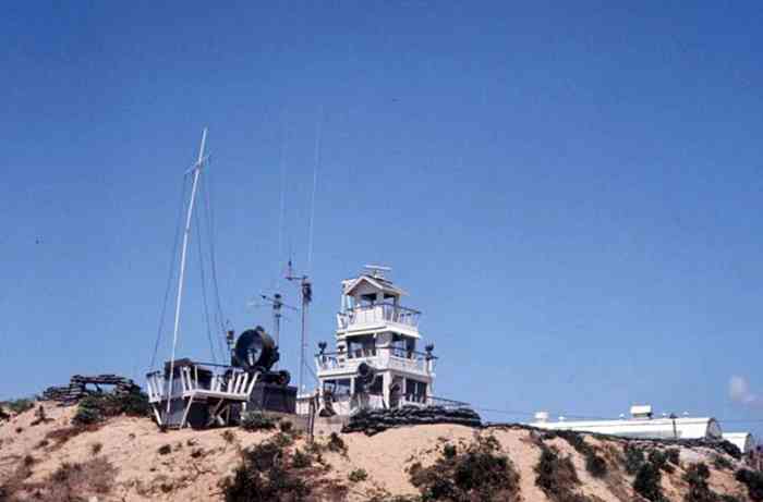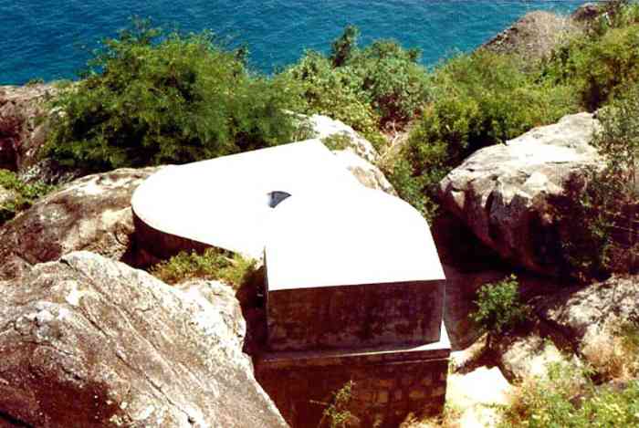 Cam Ranh. Batterie armée de trois canons de 138 Mle 1881 sur affût Mle 1917, installée en 1937 sur la pointe de Mui Non Lan, qui forme la rive nord-est du goulet d’entrée de la baie de Cam Ranh. Les pièces sont installées, à la cote 80, dans des cuves en béton armé, avec niches attenantes. La batterie dispose d’un conjugateur « Colonies », d’un télémètre H Mle 34 et d’un projecteur de 150 GP. Elle reste armée jusqu’en 1945. De nos jours, les pièces ont disparu. Batterie, bewaffnet mit drei Kanonen 138 mm Mle 1881 auf Lafette Mle 1917, errichtet 1937 auf der Landspitze Mui Non Lan, die das nordöstliche Ufer der Einfahrt zur Bucht von Cam Ranh bildet. Die Geschütze sind auf Höhe 80 in Stahlbetongruben mit angrenzenden Nischen installiert. Die Batterie verfügt über einen „Kolonien“-Konjugator, einen Entfernungsmesser H Mle 34 und einen 150-cm-Scheinwerfer GP. Sie bleibt bis 1945 bewaffnet. Heutzutage sind die Geschütze verschwunden. Batterij, bewapend met drie kanonnen van 138 mm Mle 1881 op affuit Mle 1917, geïnstalleerd in 1937 op de punt van Mui Non Lan, die de noordoostelijke oever van de toegangsgeul van de baai van Cam Ranh vormt. De stukken zijn op hoogte 80 geïnstalleerd in gewapendbetonnen kazematten met aangrenzende nissen. De batterij beschikt over een „Koloniën“-conjugator, een afstandsmeter H Mle 34 en een 150 cm-zoeklicht GP. Zij blijft tot 1945 bewapend. Tegenwoordig zijn de stukken verdwenen. Battery armed with three 138 mm guns Mle 1881 on mounting Mle 1917, installed in 1937 on the Pointe de Mui Non Lan, which forms the north-eastern bank of the entrance channel of Cam Ranh Bay. The pieces are installed at contour 80 in reinforced concrete pits with adjacent niches. The battery has a “Colonies” conjugator, a rangefinder H Mle 34 and a 150 cm searchlight GP. It remains armed until 1945. Nowadays, the pieces have disappeared. Baterie vyzbrojená třemi 138mm děly vz. 1881 na lafetě vz. 1917, instalovaná v roce 1937 na mysu Mui Non Lan, který tvoří severovýchodní břeh vstupního průplavu zálivu Cam Ranh. Kusy jsou instalovány na kótě 80 v železobetonových jámách s přilehlými nikami. Baterie má konjugátor „Koloniální“, dálkoměr H vz. 34 a 150cm světlomet GP. Zůstává vyzbrojena až do roku 1945. V dnešní době kusy zmizely. © JJM 19/04/2026