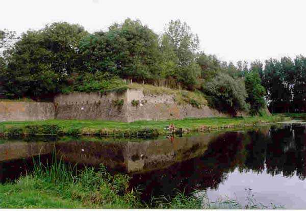 Fortress of Dunkirk. Old square fort, built in 1676, established on the Bergues canal and decommissioned by the Superior War Council on 1 October 1888 (law of 27 May 1889). Unlike its neighbour, fort Louis, its escarp is completely covered. We were unable to visit the interior. Water-filled moats where fishing is practised. Sometimes designated by the name "Fort Français" or also "Fort Saint-François". Today (09/2004) its glacis are laid out as a public park.