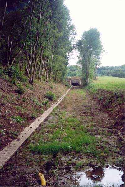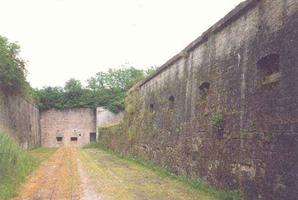 Toul fortified camp, ESE of the town, 1874-1880. 345 m/alt. Called Fort Trévise. Redoubt built on an initial plan close to that of Lucey, therefore as a stopping fort, that is to say having actions over 360°. Square with sides of 180 m, its ditches were defended by two ailerions (salients II and IV) and a double caponier (salient III). All the premises are grouped around the Mougin Mle 1876 turret which occupies the epicenter of the structure. The upper parts then include at each corner an infantry position behind which, octagonal by force of circumstances, was the artillery crest with shelters under traverse, all dominated by the turret. The main circulation axes follow the diagonals which lead from the caponiers to the barracks. Parallel to the center of each front, a small courtyard with a light well separates two rows of three barracks on a single level. Only the officers' barracks overlook a slightly wider, hexagonal courtyard and the capital. The initial entrance to the redoubt was quite unusual. A fixed bridge allowed crossing the ditch. At the level of the escarpment, the line of the latter curved inward, thus pushing back the entrance and defending it with battlements in the curved lateral sections. This is also found at Villeneuve-Saint-Georges, but on the counterscarp. A first drawbridge was to hinder the attacker. This entrance was located quite close to salient I. The left of the entrance porch up to this salient and probably for 20 to 25 m of the escarpment of front I-II, consisted of a solid mass surmounted by an infantry position. Once through the porch, a small courtyard opened onto the actual entrance to the redoubt, which was at a 45° angle to the right, preceded by a ditch crossed by an Ardagt and Pilter drawbridge. On either side of this second entrance ran a crenellated gallery that was intended to prevent any approach from this side. The second entrance porch was aligned with the capital, which therefore corresponded to the diagonal of the redoubt leading to salient III and its double caponier. This double entrance on the escarpment explains the absence of any organ, even a simple ravelin, on the counterscarp, but was a choice never repeated elsewhere. After the guardhouses, one crossed an annular gallery running along the back of all the premises in the center of the redoubt. Directly beyond this was the hexagonal courtyard of the officers' barracks (these were still numbered 37), a courtyard into which a second annular gallery opened and beyond which one headed straight for the final annular gallery at the zero level of the Mougin turret's substructures. The powder magazines were special, as in the Lucey redoubt. Located on either side of the start of the double caponier sheath, their partitions naturally followed the curve in which all the premises were grouped, so much so that the two small sides were not parallel and the two large ones were not the same length. Their capacity was around 50 tons/magazine. Finally, in terms of particularities, we should also note the detached coffer, which is a unique element in France. This coffer could be reached by a gallery opening in the counterscarp not far from salient II. It led directly to this coffer with a large visor, which beat the part of the ditch of the envelope of the complex in the direction of the North battery, until the contact of this ditch with the road coming from Toul and entering the village. For purists, we should also note that the scarp of the redoubt is detached, which is relatively rare. Some will claim that it is only half-detached due to the size of the command of its covered way, but, if it is true that the latter is placed higher than usual and that we are therefore close to the lowest half-detached scarp encountered elsewhere, the height of the scarp wall allows us to decide in favor of the first option. It should never be forgotten that the covered way is always located higher than the area it is supposed to cover, even in the case of detached escarpments. In 1890, a barracks was poured in special concrete under the escarpment and in the center of front IV-I, on the same model as those of the North and South batteries, but with an additional barracks. In the circulation corridor at the rear of this barracks, a new corridor was cut down to the foot of the turret, a corridor that was concreted. From 1903, it was the entrance that was to be completely redesigned. The two porches were leveled and the mass of salient I as well. In its place and one level lower, on either side of the axis of diagonal I-III, a new barracks of reinforced concrete (40 x 20 m) was concreted, which included the hexagonal courtyard and the guardhouse of the first escarpment entrance, a room that would henceforth be used for handling. From the corner of this former guardhouse, salient I was beveled at 45°. The new entrance to the redoubt would appear slightly projecting from the center of this bevel. To its left and right, two crenellations defended the approaches at right angles, but there was no parallel defense. The counterscarp boxes that replaced the caponiers would therefore not be able to fire at the entrance even if, to reach the latter, it was necessary to cross their fields of fire. The communications along the diagonals would also be concreted and those joining salients II, III and IV would receive the shafts of three armored observation posts. Some rooms would be filled and/or transformed into new proof magazines. The old powder magazines were in this case. In 1912 and 1913, on the glacis of salient IV, the substructures of a battery of two 155 C turrets were completed, but the First World War intervened before the armor was installed. The armored observatory of this battery, which would have been connected by an underground gallery to the vault of the nearest salient, was nevertheless installed. During the Second World War, the occupier recovered the gates, doors and observation sentry boxes, but the turr