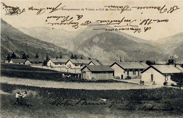 Place de Bourg-Saint-Maurice, ouest-sud-ouest de la ville, 1890-1891(1893 ?). 1065 m/alt. Elle interdisait la route du col du Petit-Saint-Bernard en collaboration avec le fort du Truc et le blockhaus de la Platte. Elle a une forme trapézoïdale. Les fronts de tête et latéraux ont un fossé défendu par des coffres de contrescarpe (simple au saillant II et double au saillant III), tandis que la gorge reprend une défense tombée en désuétude depuis l’avènement du système polygonal, soit une caponnière double dans l’axe du pont-levis avec passage sur son ciel. Chose rare, l’accès aux coffres est en puits. Les fossés ne sont pas revêtus et tant escarpe que contrescarpe sont en terre croulante. En fond de fossé, il subsiste une grille défensive sur laquelle vient singulièrement butter un passage couvert pourvu d’un escalier rampe. Cette grille est donc postérieure aux plans initiaux et date certainement de la réorganisation de 1914-1916. L’entrée d’escarpe est légèrement en retrait ce qui permet à la caponnière d’occuper toute la largeur du fossé. Le pont-levis à bascule en dessous et son mécanisme sont en très bon état. En 1914, la batterie de Vulmix est probablement l’ouvrage le plus moderne des Alpes. L’intégralité de son artillerie était sous casemates bétonnées. Son armement consistait en 6 canons de 120 et 2 autres de 95 mm, le tout réparti par paires dans les 4 casemates. Ses flancs sont bardés de deux tourelles de mitrailleuses (saillants I et IV) lesquelles n’ont pas d’observatoire cuirassé. Un unique observatoire, bétonné et agissant pour l’ensemble des casemates, est implanté entre les casemates 3 et 4. Son puits d’accès ne laisse cependant aucun doute, un observatoire cuirassé devait être installé et la guerre est survenue avant qu’on ait eu le temps de le faire. Cette casemate n° 4, par sa configuration, nous a interpellé. On y trouve tous les ingrédients d’une casemate de Bourges, l’aspect tradittore (quoique sa mission de flanquement des batteries du Courbaton ne fait aucun doute) et le décalage des chambres de tir en moins. Un projet d'implantation d'une tourelle Galopin Mle 1890 pour 2 canons de 155 longs restera sans suite. Sur les glacis, à quelques dizaines de mètres du saillant IV, on trouve une casemate bétonnée pour un projecteur de 120 cm, casemate comprenant aussi l’abri de jour du projecteur. Curieusement, il n’y demeure aucune trace d’un quelconque volet blindé coulissant. Un plan des dessous, mis à jour le 01-06-1974, situe l’usine électrique en sous-sol de la casemate pour les 2 canons de 95 mm, soit sous le front III-IV, mais, sur place, rien n’autorise à le confirmer. Ce qui frappe le visiteur à Vulmix est qu’il ne s’y trouve pas le moindre local "de vie". Pas de casernement, pas de cuisine, pas de four à pain ni même de latrines ; cette singularité a poussé le signataire du plan de 1974 à évoquer les locaux latéraux des trois premières casemates comme étant des abris pour les servants alors qu’il s’agit de soutes à munitions. Or, d’après une étude, en 2006, du sergent-chef BICORNE, du 7ème B.C.A., les baraquements à l’arrière de la batterie ne seront érigés qu’à partir de 1908 jusqu’en 1910. Durant l’hiver 1901-1902, le commandant du fort du Truc indique pourtant que ses approvisionnements lui proviennent de Vulmix… Où donc se trouve l’hiatus ? La première guerre mondiale surprendra la batterie en totale réorganisation. Une caserne bétonnée devait prendre place en fond de fossé à droite de l’entrée et un coffre occuper le saillant IV en remplacement de la caponnière devant l’entrée. Les casemates à canons doivent aussi dater de cette réorganisation et avoir tout simplement remplacé une alternance de plates-formes de tir et de traverses-abris. En fait, les informations sur cette batterie au moment de sa construction sont (jusqu’ici) inexistants. Chose très particulière, elle est probablement le seul ouvrage de montagne où nulle part on n’aperçoit un morceau de rocher, pas même au fond des fossés ! En août 1914, les terrassements pour la caserne ayant déjà été effectués, on remédia le plus vite possible à cette brèche en construisant un simple mur au-dessus de la partie droite de la gorge. La constante occupation militaire de la batterie lui a évité les désagréments habituels tels que les tags ou, surtout, les ferraillages. C’est ainsi qu’en sous-sol de la casemate n° 3, un atelier de l’artillerie conserve un splendide spécimen de pont roulant fabriqué aux aciéries de Longwy. Les portes métalliques des soutes latérales des casemates 1 à 3 portent toujours la marque de leur fabricant "serrurerie CHEVASSU Bourg-St-Maurice" et les tourelles de mitrailleuses ont encore leur ventilateur des ateliers Air & Feu à Argenteuil. Par décision ministérielle du 25 mars 1924, l’armement comprendra désormais 2 canons de 155 L Mle 1877 et 4 canons de 155 C Schneider ainsi que les 2 canons de 95 mm et les deux tourelles de mitrailleuses. Nous ne pouvons être catégoriques quant à l’installation effective de cet armement dans les casemates, mais force est de constater que les casemates 2 et 3 on subi des modifications pour accueillir des affûts pourvus de bêches fixés sur un genre de plate-forme Arbel, donc à pivot antérieur. Les modifications de la casemate 2 ne sont pas identiques à celles de la casemate 3. Les seuls locaux de la gorge sont en sous-sol, et on y accède par un escalier s’ouvrant à gauche dans le porche de l’entrée. Ces escaliers contournent l’espace d’un monte-charge dont il subsiste le treuil au niveau inférieur. Nous sommes alors au niveau des locaux concernant les munitions et leurs charges propulsives. Une ligne montre quatre locaux dont la porte était surmontée d’un créneau à lampe. Ces créneaux ont été rebouchés et remplacés par d’a