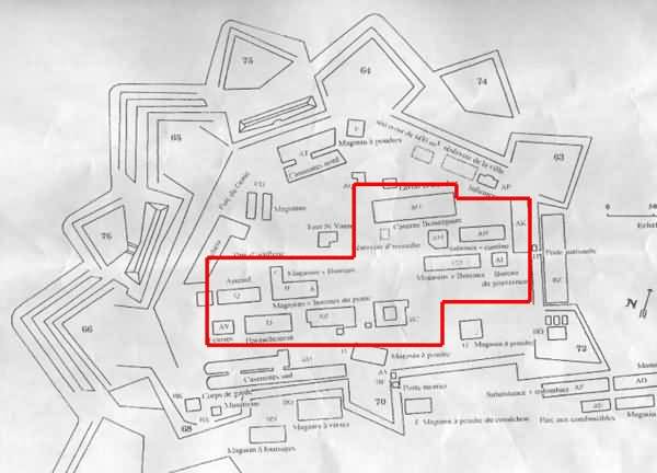 The Beaurepaire Barracks, on the western side of Verdun’s citadel, is one of the few above-ground structures that has survived almost intact since the late 19th century. Built to house artillery detachments and fortress personnel, it was incorporated into the entrenched camp’s defensive organization after 1887. Its vaulted dormitories, twin corridors, and semi-buried cellars provided protection from indirect shellfire. During the First World War, it hosted administrative offices and a field infirmary, located in an annex of similar design, with massive walls, natural ventilation, and spaces adapted for disinfection and surgery. A mural discovered in the western entrance hall depicts the 1916 battlefield — a rare witness to the garrison’s wartime life. These solid yet elegant constructions perfectly embody the dual purpose of the citadel: both a defensive fortress and a garrison city, and remain among the best-preserved examples of everyday military architecture from the Séré de Rivières system.