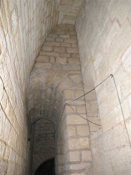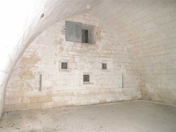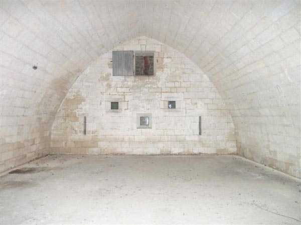 The northern powder magazine of Verdun’s citadel is one of three ammunition depots built atop the fortress during the late 19th-century modernization of the entrenched camp. Located near the northern casemates, it features outstanding masonry and an ogival floor plan measuring 14 by 10 meters. The vaulted chamber is lit by three lamp niches centered in the rear wall, defining a central passage flanked by two powder storage bays. The paved stone floor, extending up to the airlock, was designed to minimize friction and prevent accidental ignition. Its earthen covering, topped with roof tiles, provided insulation against moisture. This discreet yet solid structure exemplifies the Séré de Rivières system’s emphasis on safety and efficiency in explosive storage. Remarkably well preserved, it remains one of the purest and least altered examples of underground military engineering before 1914.