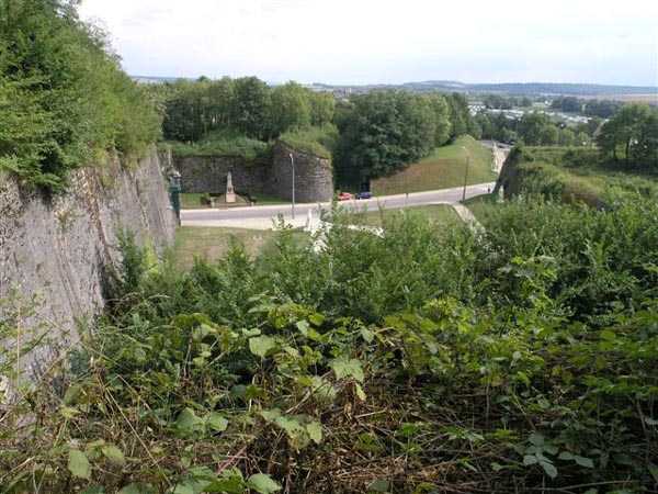 Die Westfront der Zitadelle von Verdun mit dem Bastion 66 bildet ein harmonisches Ganzes, das auf Vauban zurückgeht und Ende des 19. Jahrhunderts vom Genie-Korps tiefgreifend umgestaltet wurde. Dieser Abschnitt, der sich zur Maas und zur Straße nach Bar-le-Duc öffnet, wurde ab 1878 mit Schützenunterständen und einem gewölbten Pulvermagazin verstärkt, das durch eine dicke Erdschicht geschützt war. Im Inneren des Bastions 66 befinden sich gemauerte Doppelräume, die als Munitionslager, Werkstatt oder Bereitschaftsunterkunft dienten. Eine Quergalerie verbindet die Flanken, während eine Poterne über eine Wendeltreppe in den Graben führt. 1916 wurden betonierte MG-Stände in alte Schießscharten eingebaut und durch Gewehrscharten in der Kontereskarpe ergänzt. Der insgesamt weitgehend unversehrte Komplex zeigt eindrucksvoll den Übergang von der bastionierten Befestigung zur unterirdischen Verteidigung – ein Werk, das die Linien Vaubans bewahrt und zugleich der modernen Kriegführung angepasst wurde.