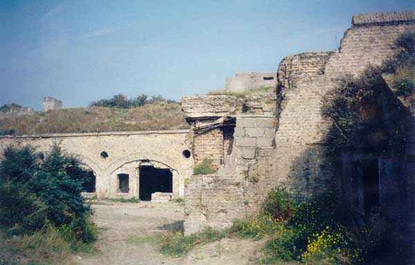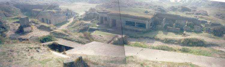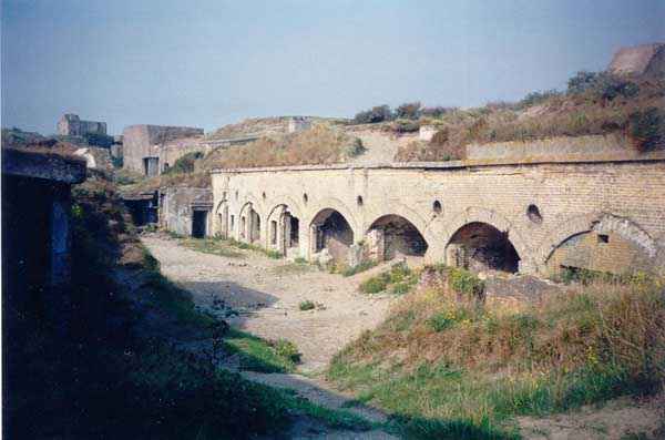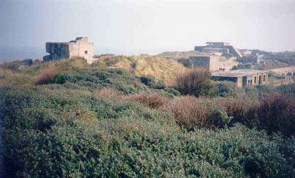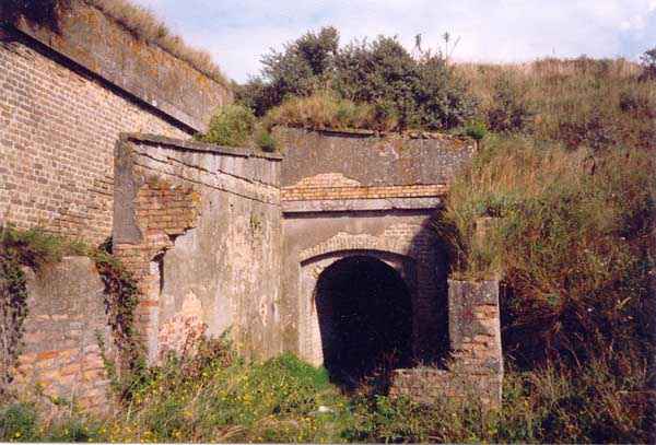 Fortress of Dunkirk, north-east of the city. Sometimes called battery of the East and recorded as built in 1877-1878, although located on the territory of Leffrinckoucke, it owes its name to the role assigned to it: to cover the Zuydcoote passage. The destroyed entrance featured the chronogram "1879". Built on the sea front, entirely of yellow bricks, it was an annex of the Dunes fort. Roughly rectangular, it had a ditch defended by two small double caponiers. While the one at Salient II has disappeared, the one at Salient IV can still be discerned through the vegetation (09/1998). The external dimensions of this feature lead us to estimate that defence by musket fire only is most probable. The escarp of the gorge front was detached, that of the other fronts, semi-detached. Initially, the front II-III (facing the sea) featured a line of four 95 mm Mle 1888 guns and a second, in the same alignment, of four 19 cm guns. These two batteries were preceded by a parapet 10 m thick. The north-eastern lateral front had two other 95 mm guns on siege and garrison carriages, to cover the belt of dunes towards Belgium. Beneath these two emplacements, a powder magazine (17,660 kg) of classical design can still be found, except that the lateral ducts are only a very narrow ventilated void and the single lamp niche is located next to the entrance. Later, this magazine housed exclusively the ammunition for the 95 mm guns. A second magazine, concreted and shell-proof, was built opposite the entrance in 1893. The concrete cover reaches 350 cm and the storage room, flanked by two airlocks with lamp niches, each followed by an access staircase, measures 6.5 x 5 x 3 m with a capacity of 19,442 kg of powder. This semi-buried magazine had a covered gallery added with a lighter roof, three windows and open flanks, which was to be the projectile magazine. The site underwent many modifications, the most remarkable of which was, in 1913, the removal of the 19 cm gun emplacements and their replacement by four 24 cm Mle 1876 guns on Mle 1911 mountings. The line of the 19 cm guns was then remodelled to accommodate this armament with two concrete magazines serving guns 1 and 2, and 3 and 4 respectively, with guns 2 and 3 separated by a full traverse. The barracks, for 128 men, is set at an angle in the right half of the battery. It comprises six bays on a single level. In 1900, 350 m East of the battery, the necessary infrastructure for a searchlight was established. A power plant, with an oil tank attached to its left, was established in the dunes, about a hundred metres behind a combat shelter, itself connected by railway to the day shelter, about fifty metres further back sheltered by a dune. About thirty metres to the left of the combat shelter was the searchlight command post. Perhaps the power plant remains? We were unable to verify this. As for the combat post and the command post, it seems they no longer exist; the dune having receded significantly, we only distinguished a German Pak casemate on the beach. After the First World War, the battery's armament still included the 4 x 24 cm guns, 2 x 155 mm and 4 x 95 mm, as well as 2 x 150 cm searchlights (including the one we just mentioned?). The site was further modified by the French in the Interwar period with the installation of a concrete observation post (still present) and the replacement of the 24 cm guns by 4 x 194 mm Mle 1902 and, especially, by the Germans who turned it into a coastal battery which, to this day, offers the visitor a complete panel of the different blockhouses composing a coastal artillery battery. This site is among the most interesting to visit and study. Several eras are closely intertwined here and a novice in fortifications risks, as we did in 1998, being utterly confused. The sea front has receded and a long section of the original escarp wall no longer protects any ditch. The bricks of the counterscarp made a bed of brick fragments for the four H671 casemates (for 105 mm guns) backing onto the dune belt. Some of these casemates still have their embrasure shutters formed of two steel plates separated by a gap filled with tar. Let us also note the very particular configuration of the M162a fire control post. According to some, due to a dune movement, according to others due to an Allied bombardment, a crater destabilised the structure at its rear, making necessary the construction of a sort of angular buttress supporting the blockhouse by resting above the access door. To the left of this fire control post, the blockhouse is none other than the first of the two French magazines of the 24 cm battery. Signs prohibit access to the battery and there was episodic talk of razing everything. May such a design never be realised, for such richness, such a variety of coastal fortification elements in such a small area is almost unique. Furthermore, with the nearby Dunes fort, there is an undeniable tourist potential.