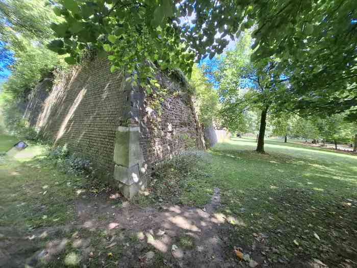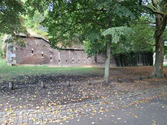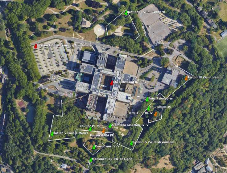 From the 11th century, under the leadership of Prince-Bishop Notger, Liège acquired the first walls of coal-bearing sandstone surrounding the urban core but leaving the hill of Sainte-Walburge outside the walls, despite an extension project outlined by Emperor Henry IV in the 12th century; from 1204, a new wall connected the Porte Sainte-Walburge to Païenporte and Hocheporte, but it remained unfinished when, in 1212, Duke Henry I of Brabant scaled the walls and pillaged the city, which led to the accelerated completion of the defenses in 1215; in 1255, Prince-Bishop Henry of Guelders had the Porte Sainte-Walburge built, equipped with towers, a drawbridge, a prison, a well and stairs to the valley, the first milestone of the citadel itself, which became a military but also a political tool of urban control; The following centuries saw destruction and reconstruction, including the terrible assault of 1468 by Charles the Bold, confirming the strategic importance of the site, further reinforced in the 16th century by bastions adapted to artillery; in the 17th century, Maximilian Henry of Bavaria ordered the construction (1650-1671) of a pentagonal bastioned citadel with five bastions — Saint-Lambert, Saint-François, Sainte-Marie, Saint-Maximilien and Saint-Henry — designed by engineers inspired by Vauban's methods, intended to lock down the city; it passed into the hands of the French several times, then to the Dutch after 1815, before being decommissioned at the end of the 19th century, replaced by the ring of Brialmont forts (1888-1891), then becoming a barracks, depot and command post; In the 20th century, it was occupied by the Germans during both wars, used as a military hospital, place of internment and execution (Enclos des Fusillés), before still housing some military services after 1945; the site, rich in underground infrastructure, notably preserves numerous ventilation and water supply wells, including the Païenporte well still visible behind curtain IV-V, while an enormous casemate occupies more than the length of curtain III-IV and communicates with the CPRA PFL command bunker, now inaccessible but potentially reopenable; The construction of the Regional Hospital Centre (1974-1978) led to the destruction of a large part of the works, but several curtain walls, bastions and ravelins are classified as monuments and integrated into the Citadel Park, which now offers a trail of memory and landscapes, bearing witness to the evolution of a major site in the military and urban history of Liège, from the Middle Ages to the present day.