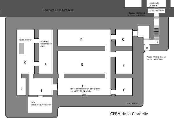 Bunkr označovaný jako CPRA (Centre Provincial de Renseignement et d’Alerte) umístěný u kurtiny 4-5 verdunské (liége) citadely je v dostupné literatuře a na mapách identifikován jako provinciální uzel pro sběr zpravodajských údajů a poplachové signály; jedná se o betonovou stavbu s kulovitými přístupy a sérií technických místností pro radiokomunikaci, telefonii a zásobování, spojených vnitřními chodbami s povrchovými přístupy a logistickými rampami, která odpovídá koncepci CPRA realizované v pozdních 30. letech (programy schválené od 1937) a dodatečně upravené v poválečném období (např. přístavba věže pro nasávání vzduchu s filtrem NBCR a další betonové úpravy); obdobné CPRA byly navrženy i v dalších provinciích Belgie, avšak jejich rozsah a dochovanost se výrazně liší a podrobnější dokumentace často chybí nebo je rozptýlena v místních archivech.