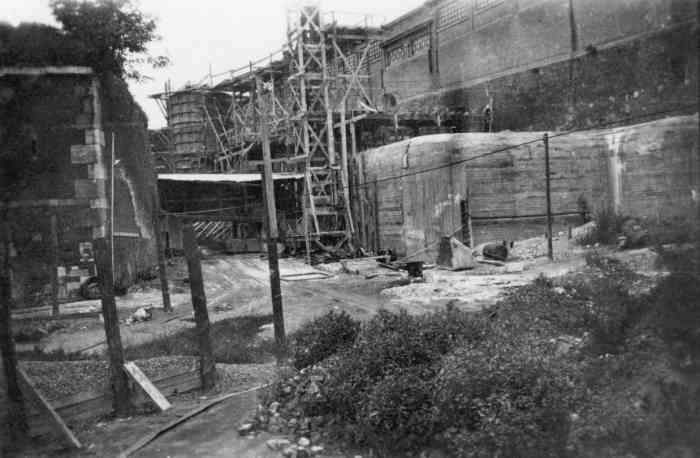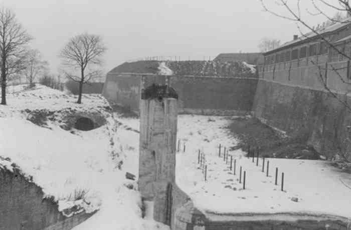 The bunker identified locally as the CPRA (Centre Provincial de Renseignement et d’Alerte) at curtain 4-5 of the Citadel of Liège appears in fortification surveys and local field reports as a provincial intelligence and alert centre type of installation, combining concrete rounded headworks and semi-subterranean technical chambers organised around radio, telephone and power equipment and linked by internal passages and surface service accesses to allow rapid resupply and redundant communications; the CPRA concept — decisioned in the late 1930s as part of a broader program of provincial centres tied to the CTF (Centre Tactique de Front) network — was intended to gather battlefield information, centralise alarming and coordinate communications between forward works and provincial authorities, and the Liège CPRA’s later history shows post-war adaptations such as the addition of an air-intake/decontamination tower and reinforced concrete works to meet changing NBC and civil-defence requirements; comparable CPRA facilities were planned for other provinces, but these vary greatly in implementation and survival today and remain a fragmentary field in Belgian fortification studies, further research in local archives being necessary to detail construction dates, contractors and precise internal layouts.