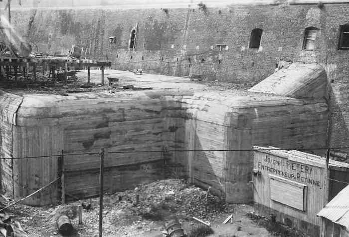 Der als CPRA (Centre Provincial de Renseignement et d’Alerte) bekannte Bunker an der Kurtine 4-5 der Zitadelle von Lüttich bildet nach den verfügbaren Fortifikationsaufnahmen und Feldbeobachtungen einen zentralen Knoten des provinzialen Aufklärungs- und Alarmnetzes, das in den späten 1930er Jahren geplant und in Teilen realisiert wurde; das Bauwerk zeigt die typischen Merkmale eines zwischen Schutzbau und Kommandoposten angesiedelten Objekts — rundliche Betonformen mit mehreren unterirdischen Räumen für Funk- und Fernmeldegeräte, Technikräume und Bereitschaftsräume, verbunden mit oberirdischen Zufahrten und internen Gängen zur Materialzuführung — und erfüllte die Aufgaben der Sammlung von Lageinformationen, der Weiterleitung von Alarmen an die Truppenführungsstellen (CTF) und der Koordination der Nachrichtenverbindungen; die Quellenlage weist darauf hin, dass ab 1937 ein landesweites Programm für CPRA-Bauten beschlossen wurde, doch sind konkrete Realisierungsdaten lokal unterschiedlich dokumentiert, wobei die Anlage an der Kurtine 4-5 später, nach 1945, zusätzliche Schutz- und Belüftungsmaßnahmen erhielt (u. a. eine Nachkriegs-Lufteintrittsturm-Installation mit Filtern gegen chemische und bakterielle Kontamination), was die lange Nutzungs- und Umrüstungsfolge dieses Typs von Bauten belegt; ähnlichen CPRA-Konzepten widmete man sich in anderen belgischen Provinzen, allerdings sind viele dieser Projekte fragmentarisch überliefert und bedürfen weiterer archivalischer Erkundung.
